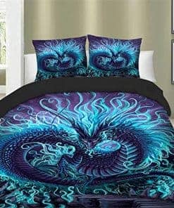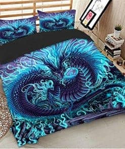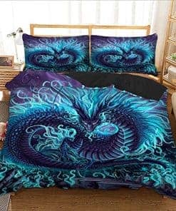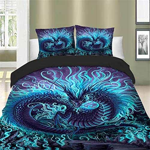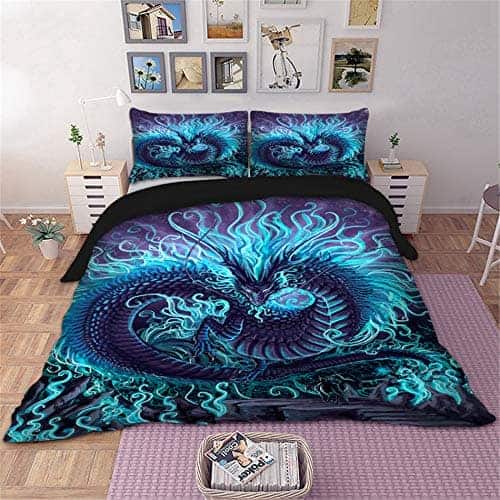 Juego de Ropa de Cama 3D Azul Dragón Chino Funda de Edredón