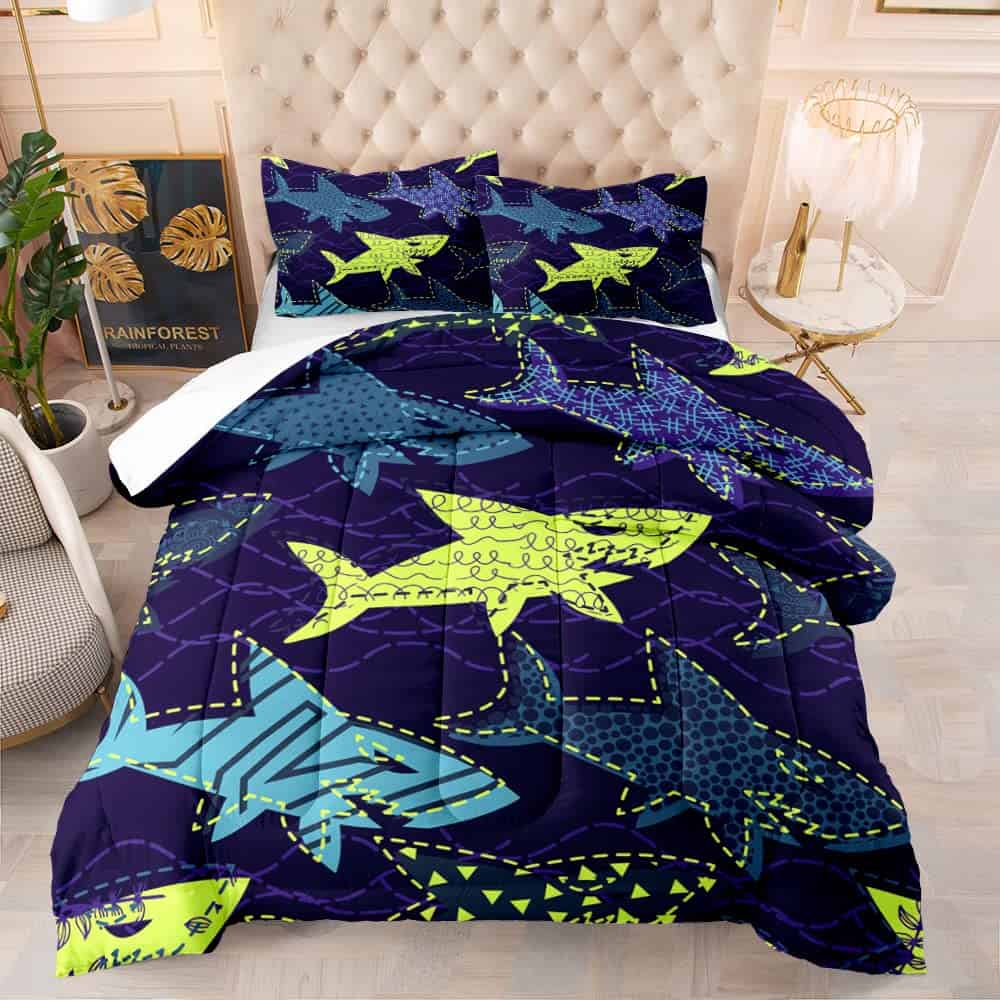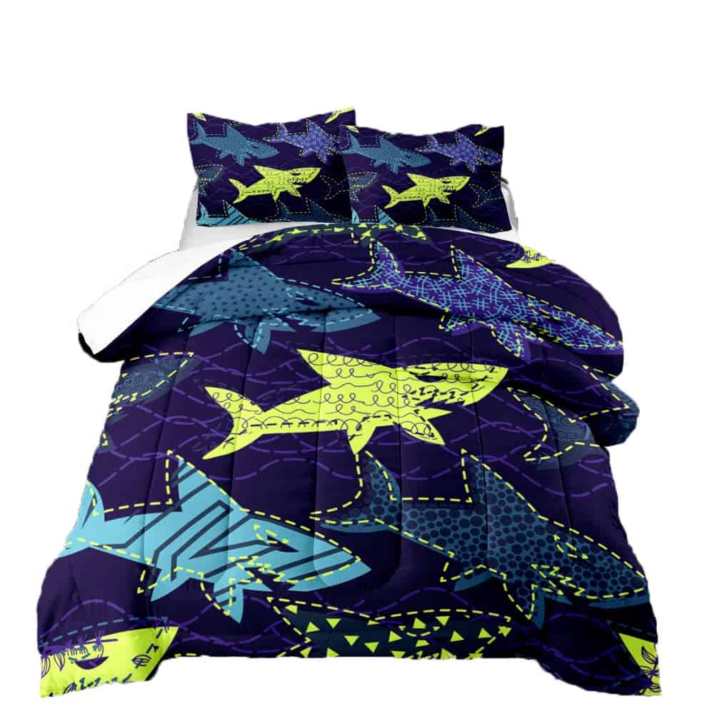 Juego de Ropa de Cama 3D de Tiburón Amarillo y Azul para