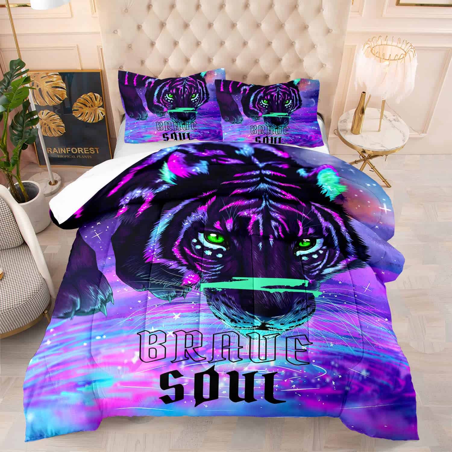 BBchose Ropa de Cama ¡Enfoca en Integrar el Arte en la Vida! Teniendo una comodidad suprema al dormir, este juego de edredón está hecho de tela de poliéster de micro-mink de alta calidad, es súper suave y cómodo para garantizar un buen sueño cada noche. El patrón en el edredón y almohadas hacen de este juego de edredón twin una decoración perfecta para el dormitorio de niñas o niños, el estilo agrega más aire de mágico y precioso a tu habitación, haciéndote sentir cálido o mágico. Disfruta de la imagen especial de toda la habitación y cada buena noche. La alta calidad de la tela te abraza suavemente, como si estuvieras en las nubes, para que puedas relajarte por completo. El juego de ropa de cama de valor incluye edredón y almohada, el estilo lo convierte en un gran regalo. Hermosa y encantadora o espectacular decoración mágica del dormitorio o hotel temático, disfruta del estilo especial de toda la habitación. Súper suave y cómodo, gran juego de edredón para todas las estaciones. Especificaciones Material: Poliéster de alta calidad Lista de empaque: Tamaño Twin:1x Edredón Twin (68″x86″) 2x Almohada (19.6 x29.5 ) Tamaño Queen:1x Edredón Queen (89″x89″) 2x Almohada (19.6 x29.5 ) Compra sin riesgos – ¡Si hay algún problema con nuestro juego de edredón twin, no dudes en contactarnos!
