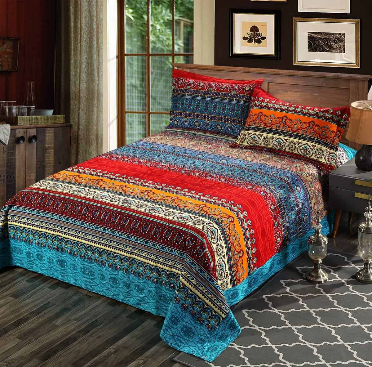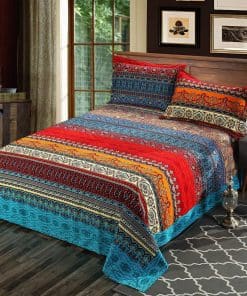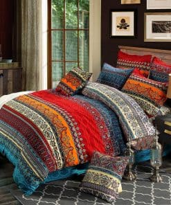 1. Juego de Ropa de Cama Tamaño Completo: 1 funda de edredón 80″x90″, 1 sábana plana 80″x96″, 2 fundas de almohada 19″x29″, Peso: 7LB, (Sin ningún edredón, funda de edredón, relleno, manta dentro, sin núcleo de almohada). 2. MATERIAL: Tela de Algodón de Alta Calidad 100%, Densidad de la tela 133 76, Algodón Cepillado, estilo de ropa de cama grueso, súper cómodo y cálido. Las estaciones están disponibles, especialmente adecuadas para otoño e invierno. 3. Funda de Edredón Reversible – con el mismo patrón en ambos lados, son de la misma calidad. Tiene una cremallera en la parte superior para que pueda colocarlo en lo que elija, no un cierre de botones. La preferencia depende del individuo. (CONSEJO: busque en línea el truco para poner su edredón en un edredón). Cada funda de edredón con 4 corbatas en las esquinas para ayudar a mantener su edredón en su lugar garantizando una mejor experiencia de sueño. 4. Diseño de patrón a Rayas Exóticas Bohemias Aspecto lujoso, El color brillante único con patrones a rayas, colores brillantes y diseños nítidos, románticos, elegantes, encantadores. Bien hecho, Material pesado de buena calidad, duradero. Los colores son perfectos y la tela es súper suave y asequible, este juego de ropa de cama es absolutamente el adecuado para usted. Lo convierte en un excelente regalo para Dormitorio, Boda, Graduación, Familias y Amigos. Regalos Perfectos para Boda, Navidad y Día de San Valentín. 5. INSTRUCCIÓN DE CUIDADO: Impresión y teñido activos de protección ambiental, incoloro e inodoro, no se desvanece, no se agrupa. Lavable a máquina, secar en secadora a baja temperatura o secar al sol, no usar lejía con cloro. Fácil limpieza, todo es lavable a máquina, nada se encoge y los colores no se corren. Extremadamente duradero y perfectamente hecho.