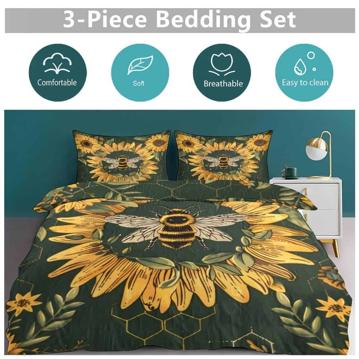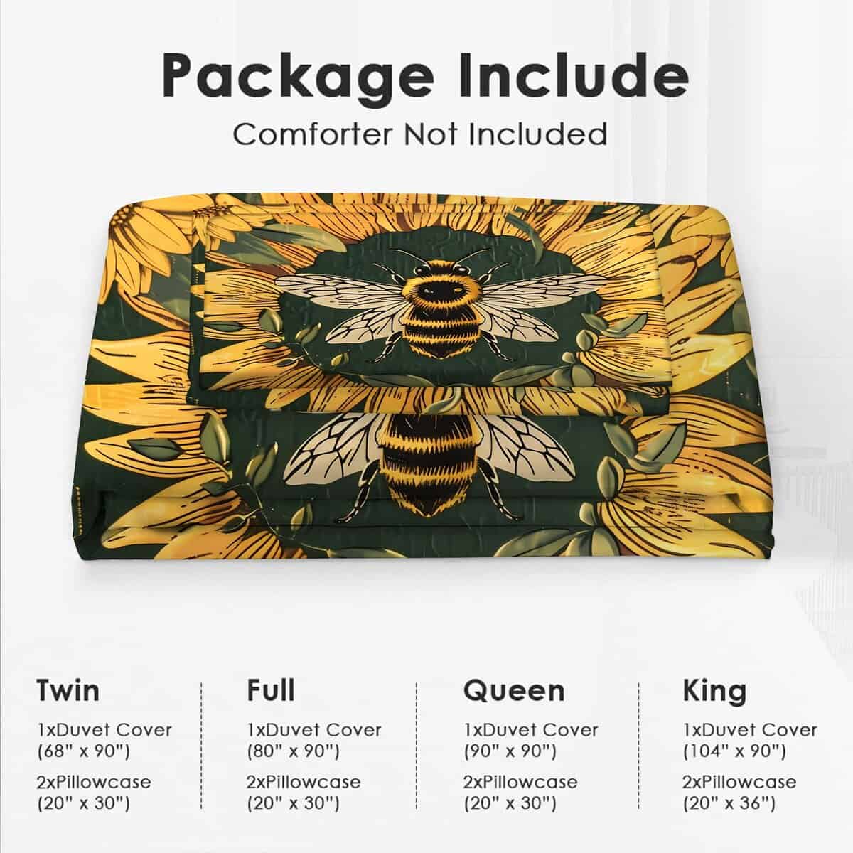 Tamaño Queen: 1 Funda de Edredón (90″ x 90″) y 2 Fundas de Almohada (20″ x 30″), el edredón no está incluido en el conjunto.