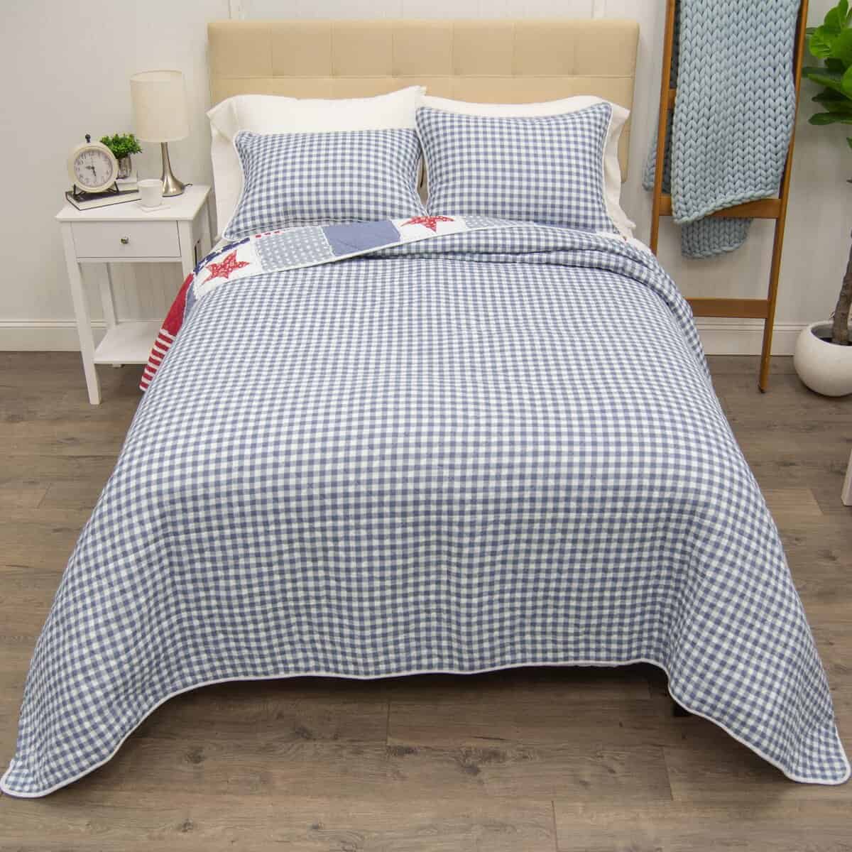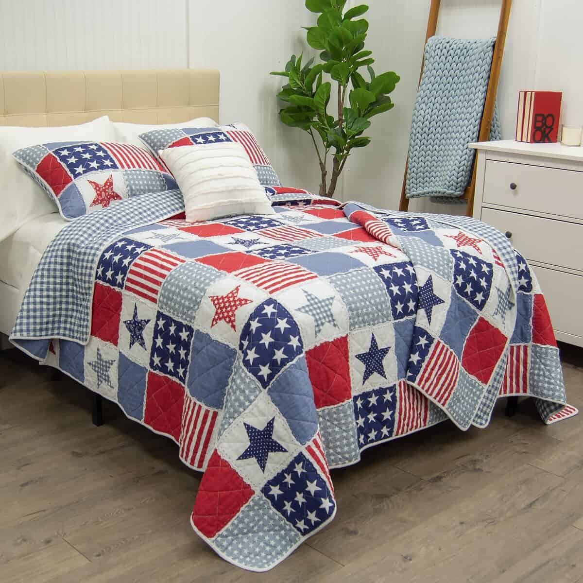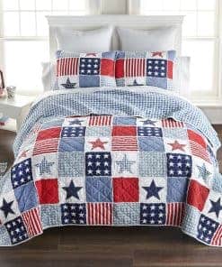 Una colcha encantadora llena de encanto americano clásico. El juego de colchas de Estrellas y Rayas de Donna Sharp es la adición perfecta para su decoración rústica americana. El atemporal motivo de Estrellas y Rayas en los icónicos tonos rojo, blanco y azul brindará un toque acogedor a su habitación. Los bordes deshilachados blancos añaden un acabado distintivo y encantador.