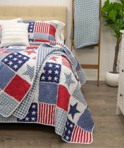 Donna Sharp es una marca reconocida por su hermosa artesanía en colchas y mantas. Fundada en 1981, representa una historia familiar de acolchado y la pasión de Donna por construir una empresa basada en esa tradición. Haga una declaración de estilo con el juego de ropa de cama acolchada con Estrellas y Rayas de Donna Sharp.