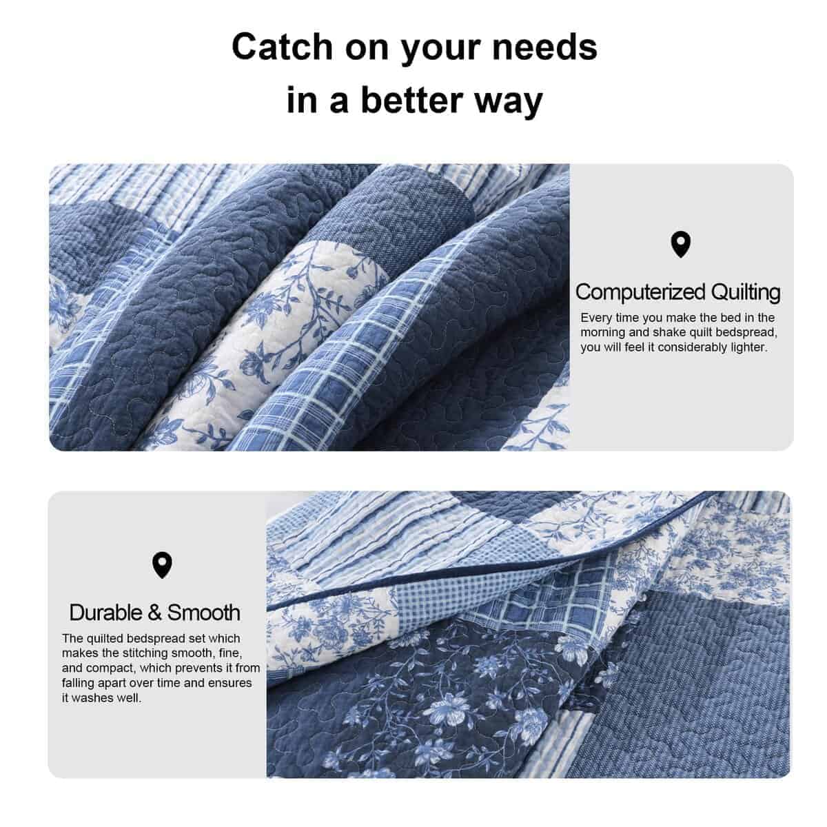 Juego de ropa de cama acolchado Queen 100% algodón