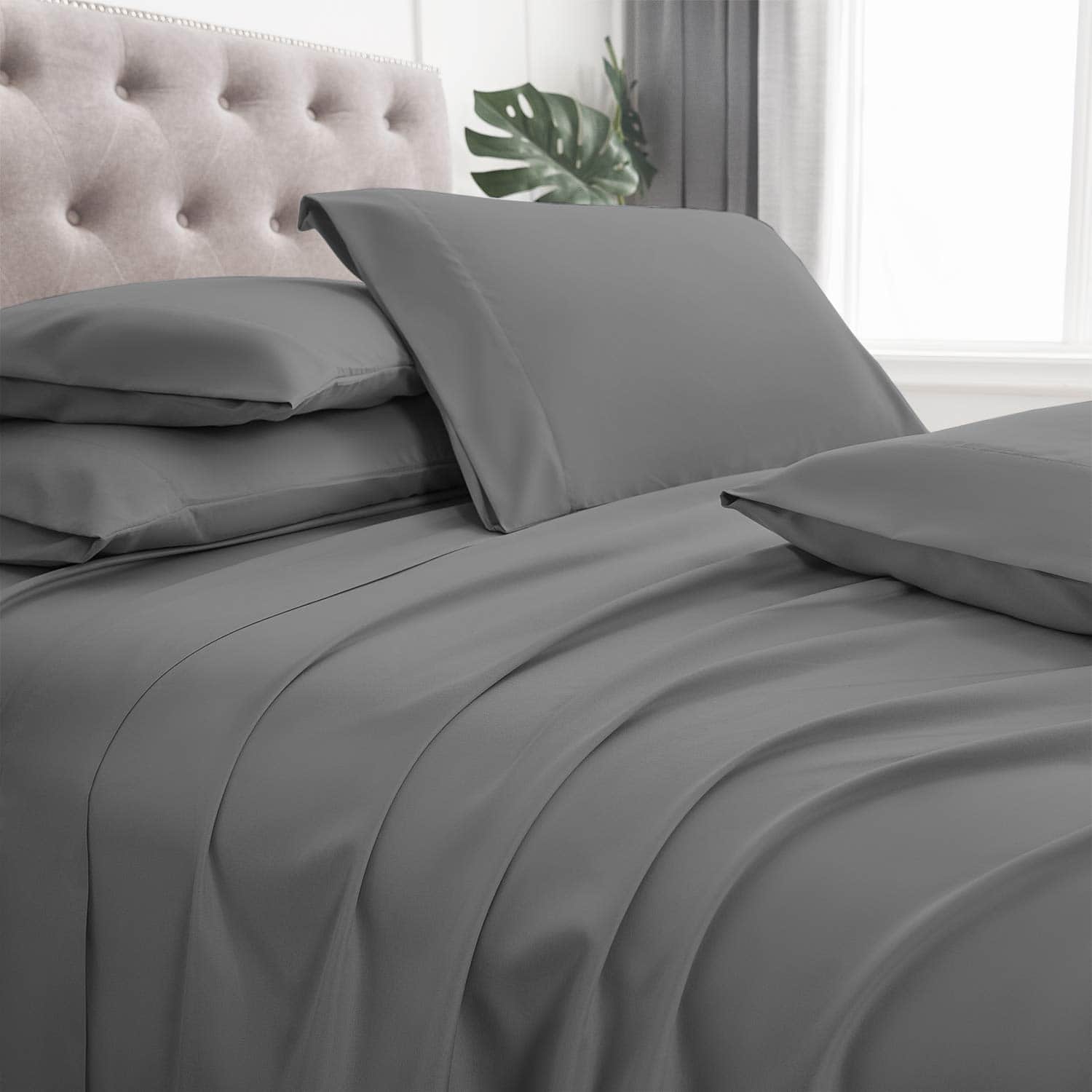 Juego de sábanas queen de 6 piezas – 1 sábana ajustable de 60 por 80 pulgadas con 14 pulgadas de profundidad, 1 sábana plana de 90 por 102 pulgadas, 4 fundas de almohada de 20 por 30 pulgadas