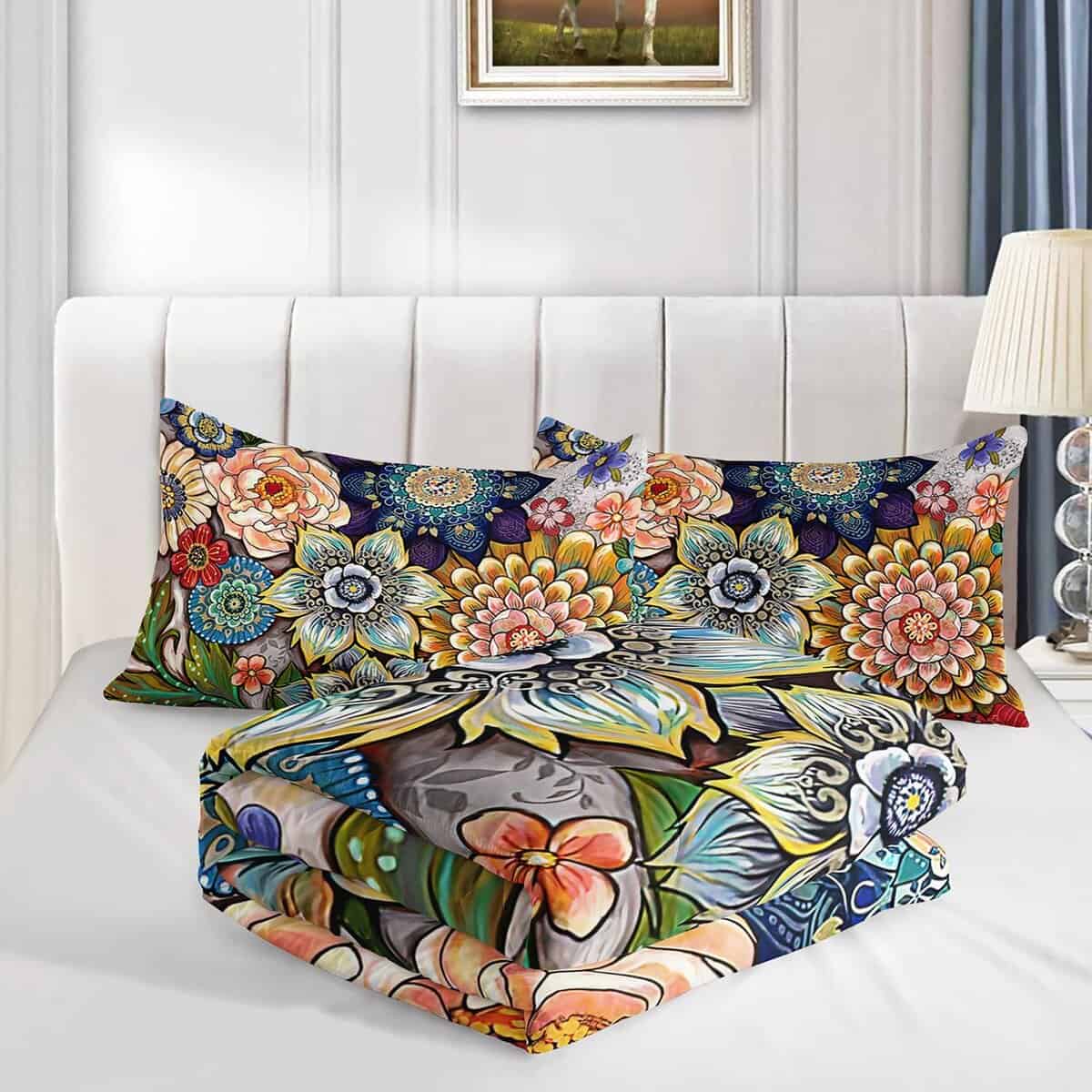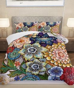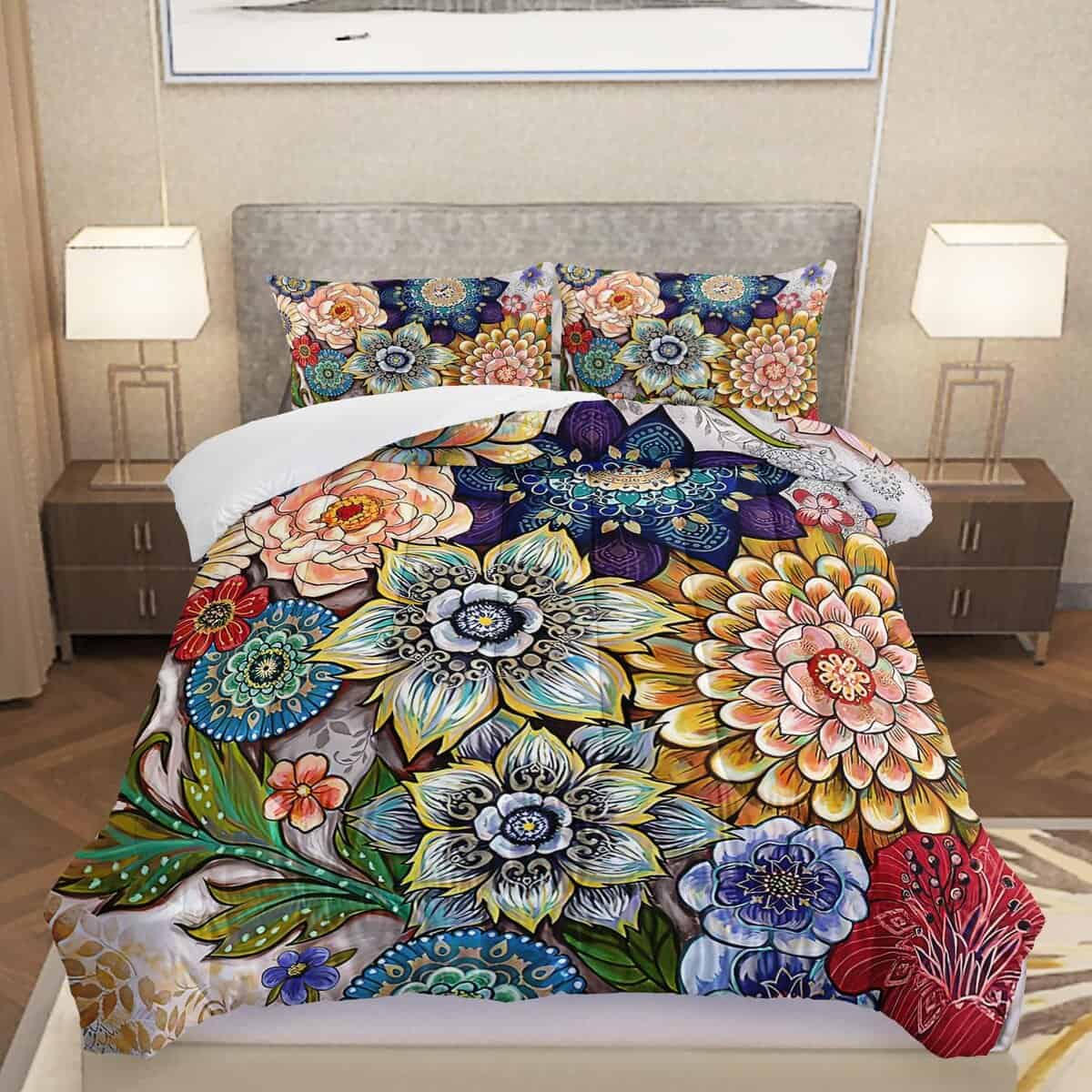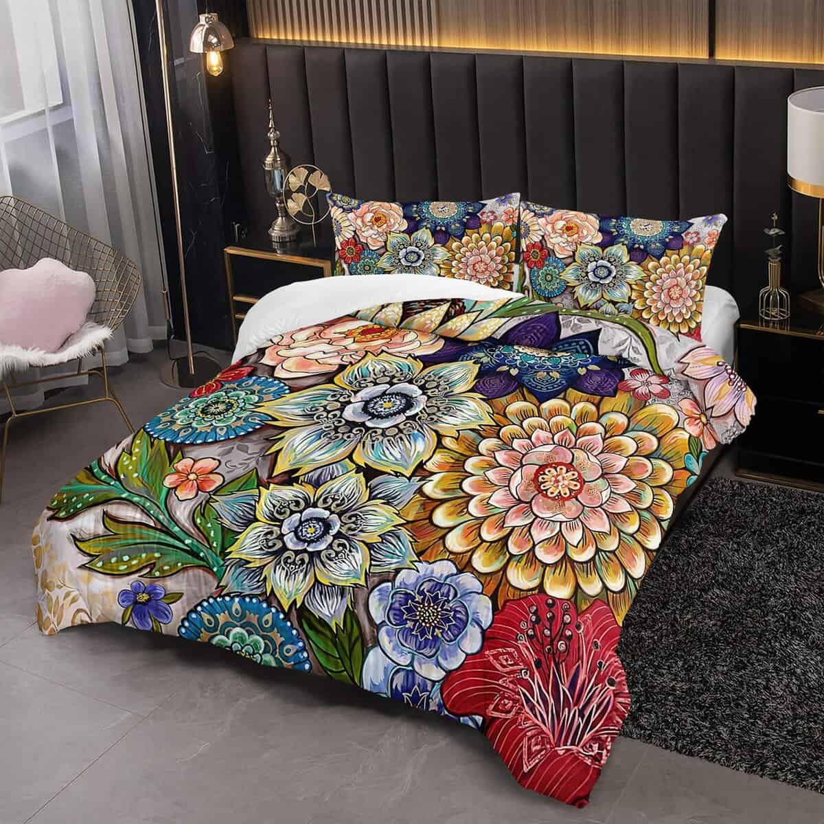 Juego de Ropa de Cama Boho Floral de 3 Piezas, Set de Funda