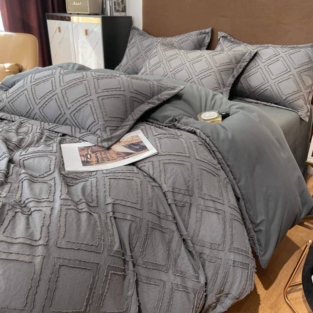 1. ¡INCLUYE 5 PCS! 1x funda de edredón de cuadros con pliegues 90″x90″, 2x fundas de almohada 20″x30″, 2x fundas de almohada cuadradas 20″x20″. (No incluye el inserto del edredón) Como funda de edredón alternativa, evita que tu edredón blanco y almohada se manchen. 2. DISEÑO LLAMATIVO: Los pliegues y el Jacquard se combinan de forma única para formar un diseño de cuadrícula texturizada en 3D. El patrón geométrico clásico en color sólido aporta una estética elegante a cualquier dormitorio. Adecuado para diversos estilos de hogar: Boho, Shabby Chic, Victoriano, Granja, Cabo Cod, Cottage, Bohemio, Contemporáneo, Hotel, Granero, Rancho, Tudor, Toscano, Mediterráneo, Montaña, etc. 3. SUPER SUAVE: Nuestros juegos de fundas de edredón ligeros y transpirables están hechos de microfibra lavada de primera calidad – suavidad superior, transpirabilidad y comodidad durante todo el año! Ligero con un proceso avanzado antipelusa y de bloqueo de color, no se apelmaza ni destiñe fácilmente. 4. DETALLES EXQUISITOS: Costura de alta densidad y ordenada. Cremallera oculta en el extremo del edredón, una solapa plegada de costura cubre el cierre de la cremallera para mayor seguridad. 4 lazos en las esquinas pueden mantener tus edredones o fundas de edredón en su lugar, en lugar de amontonarse en un lado. El borde acolchado alrededor de las fundas de almohada añade un aspecto suave y elegante, actualizando la atmósfera de lujo. 5. IDEA DE REGALO: El juego de ropa de cama neutral es un regalo perfecto para niñas, niños, hombres, mujeres en San Valentín, Navidad, Año Nuevo, Día de la Madre, Día del Padre, etc. Con un aspecto moderno y rústico vintage, es una manera fácil de transformar la apariencia de tu cama. Fácil de lavar, lavable a máquina.