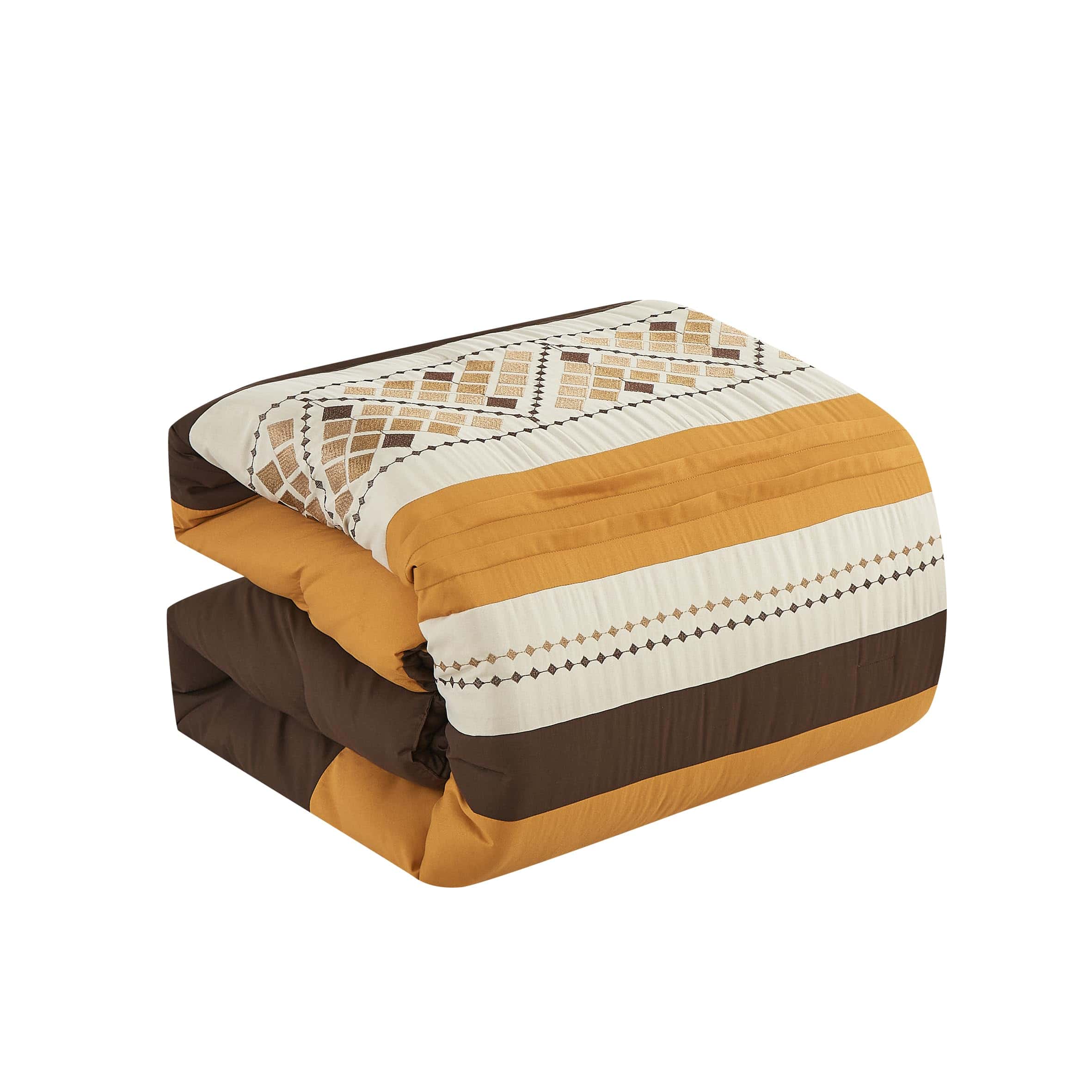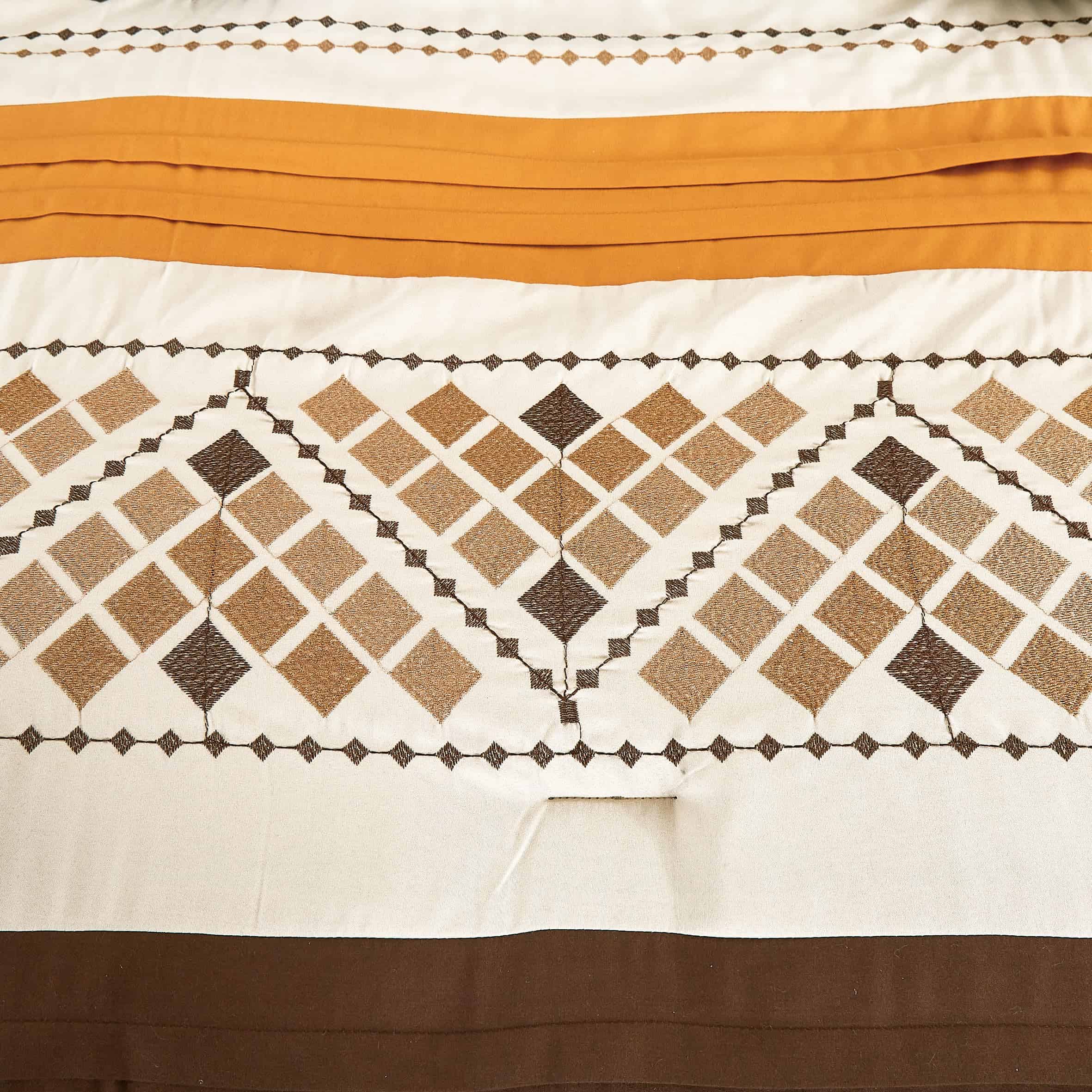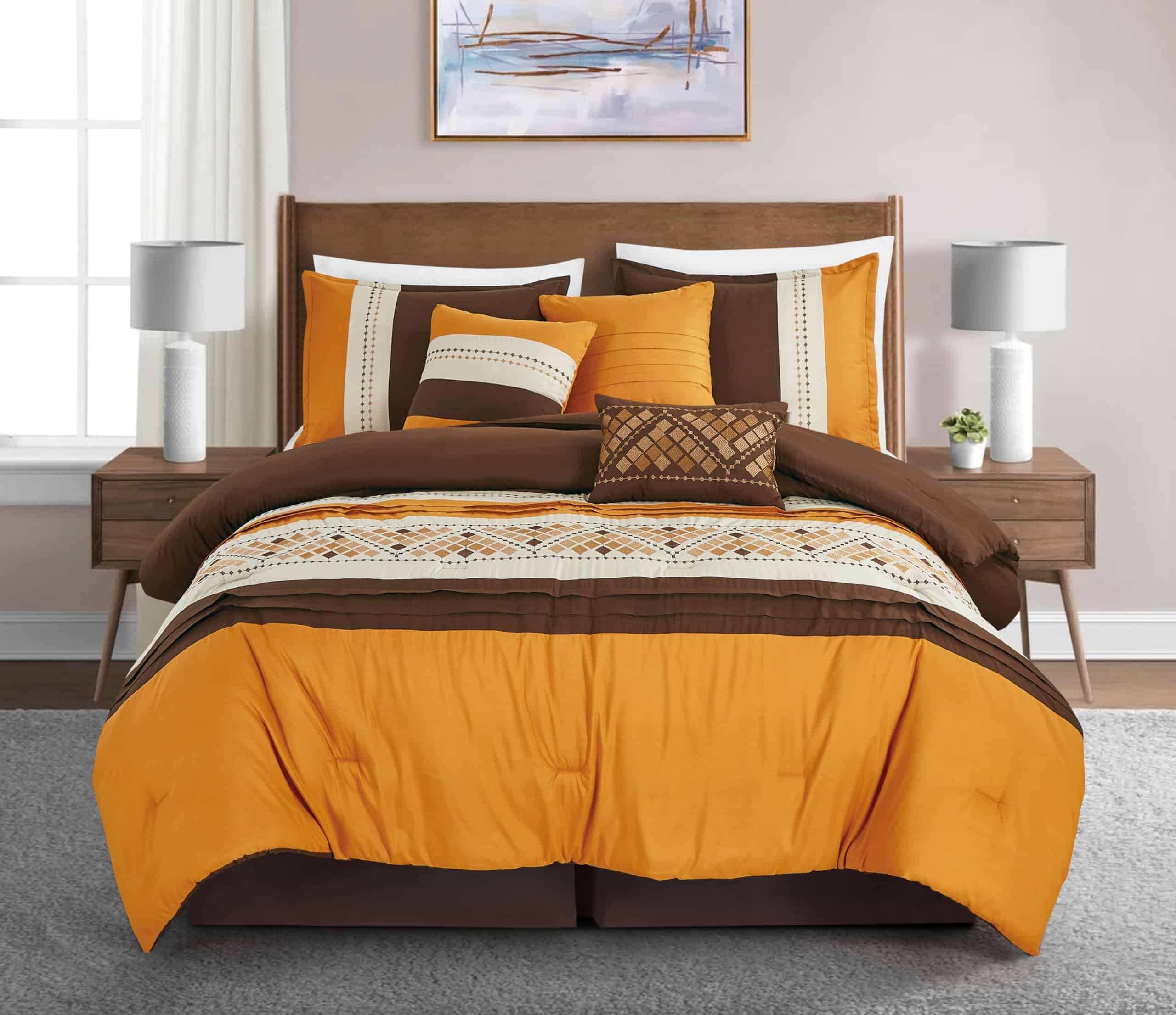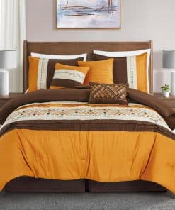 Eleva la decoración de tu dormitorio con los tonos cálidos e invitadores de nuestro elegante Juego de Edredón Geométrico Bordado Maple de 7 Piezas. Este lujoso set presenta tonos ricos de naranja y marrón oscuro, acentuados con intrincados diseños de bordado que añaden un toque de sofisticación y encanto. Perfecto para crear un refugio acogedor y elegante, este set combina comodidad y elegancia para una experiencia de ropa de cama inolvidable. Añade un toque de encanto estacional o simplemente refresca tu espacio, este set ofrece una lujosa combinación de estilo y comodidad. Transforma tu dormitorio en un santuario sereno con este hermosamente diseñado juego de edredón.