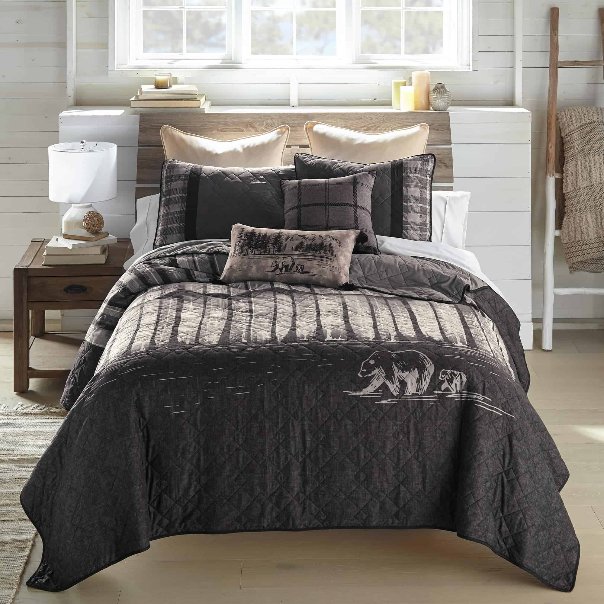 1. ENCANTO RÚSTICO REFINADO: Nuestro juego de cama acolchado Nighttime de 3 piezas te transportará a una acogedora cabaña enclavada en la naturaleza. La pieza central de este edredón muestra una fila de motivos de árboles de pino esbozados adornando paneles de madera pintados para encantar cualquier espacio.
