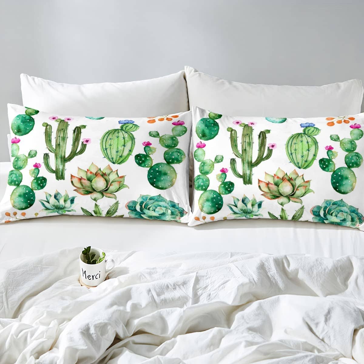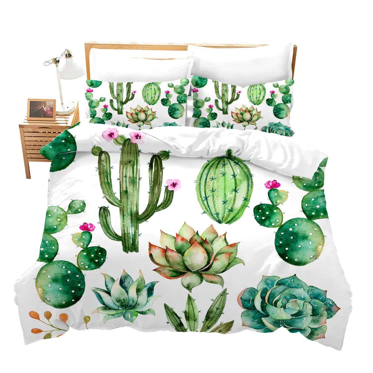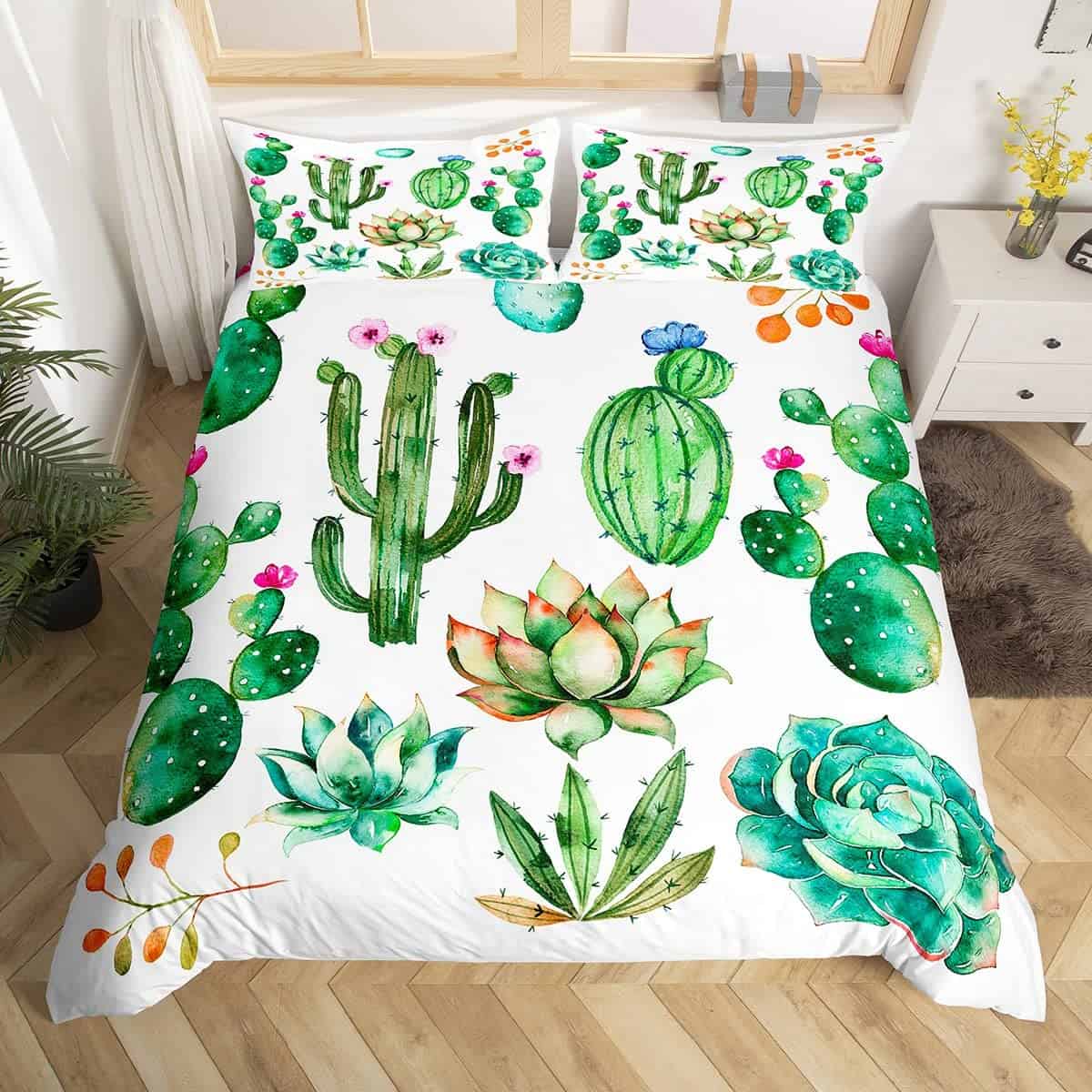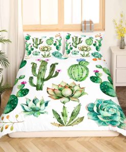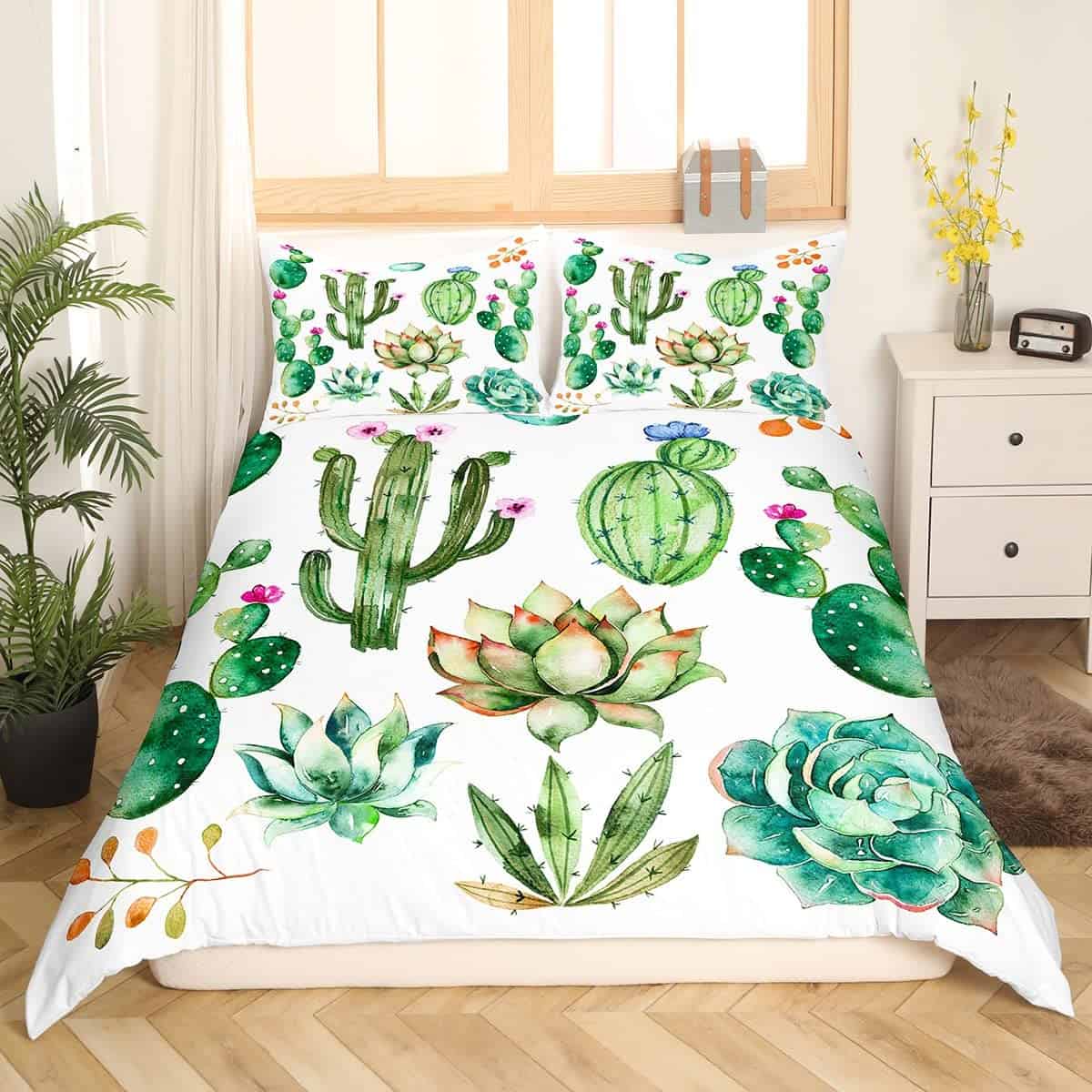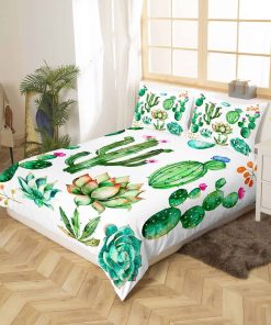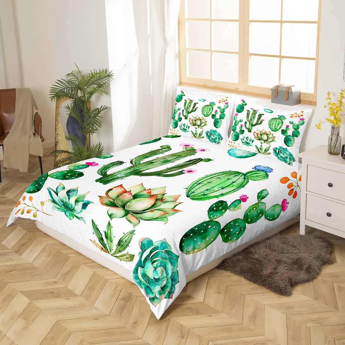 Juego de Ropa de Cama con Estampado de Cactus Brillantes