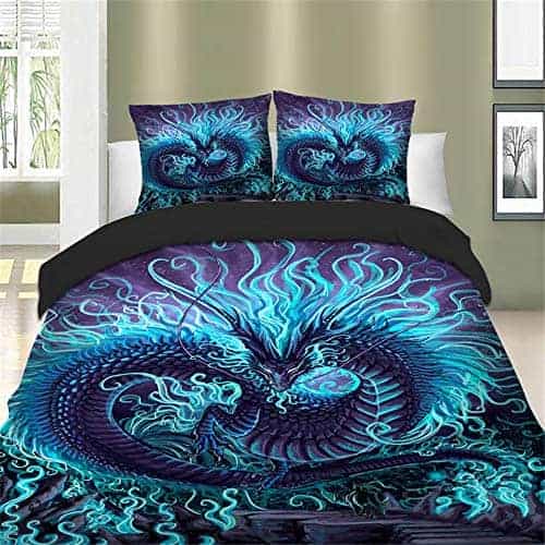 Juego de Ropa de Cama con Estampado de Dragón Azul 3D