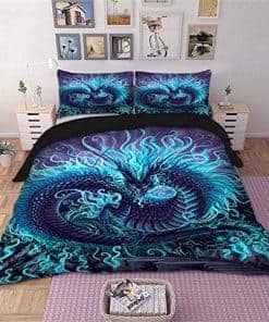 Conjunto de ropa de cama con estampado de dragón azul 3D de alta calidad. Disponible en diferentes tamaños para adaptarse a camas Twin, Full, Queen, King y UK King. Incluye funda nórdica y fundas de almohada a juego. Añade un toque de elegancia y estilo a tu dormitorio con este juego de ropa de cama único.