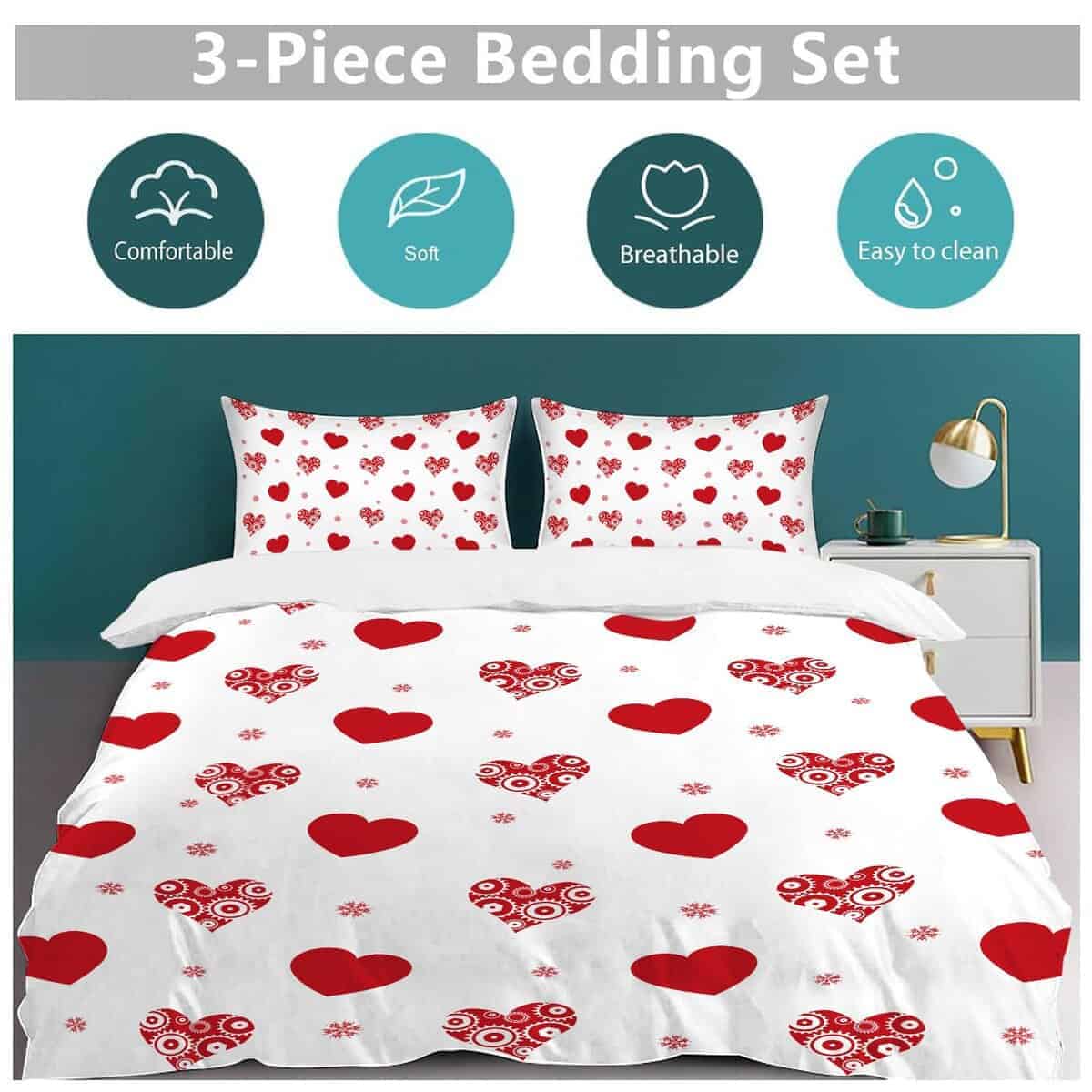 1. Juego de 3 piezas de ropa de cama: 1 funda de edredón + 2 fundas de almohada. TENGA EN CUENTA: Sin edredón, sin almohada, sin sábana, sin sábana ajustable.