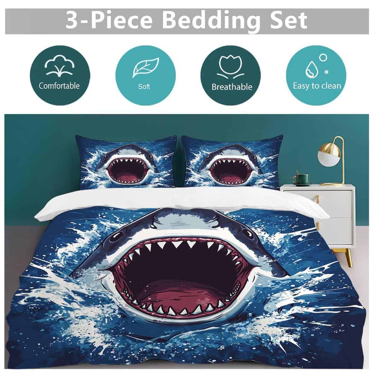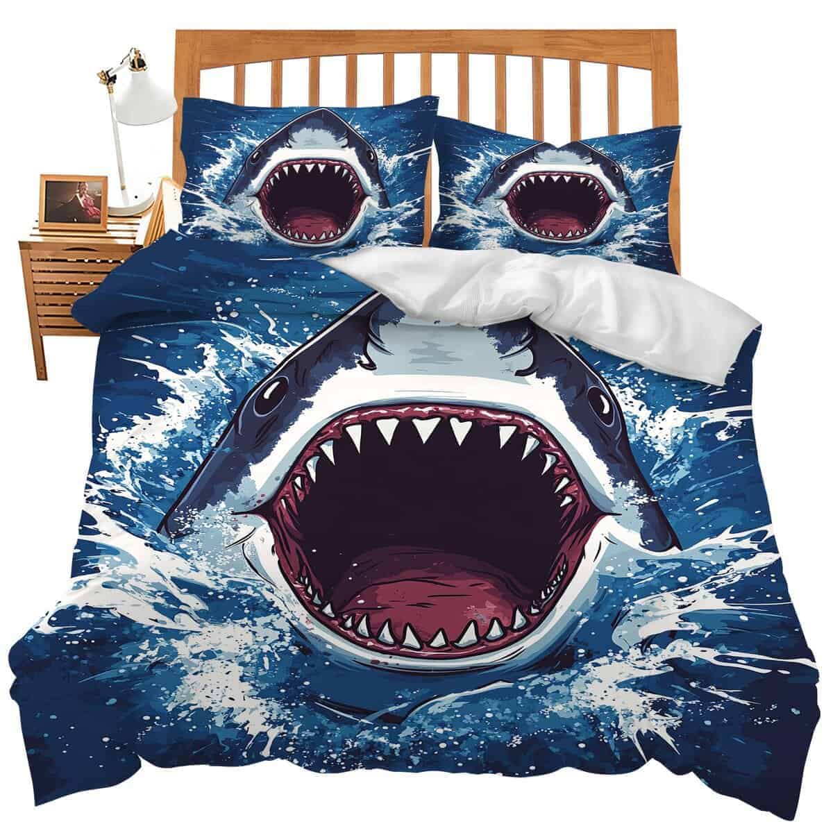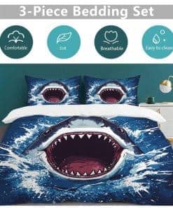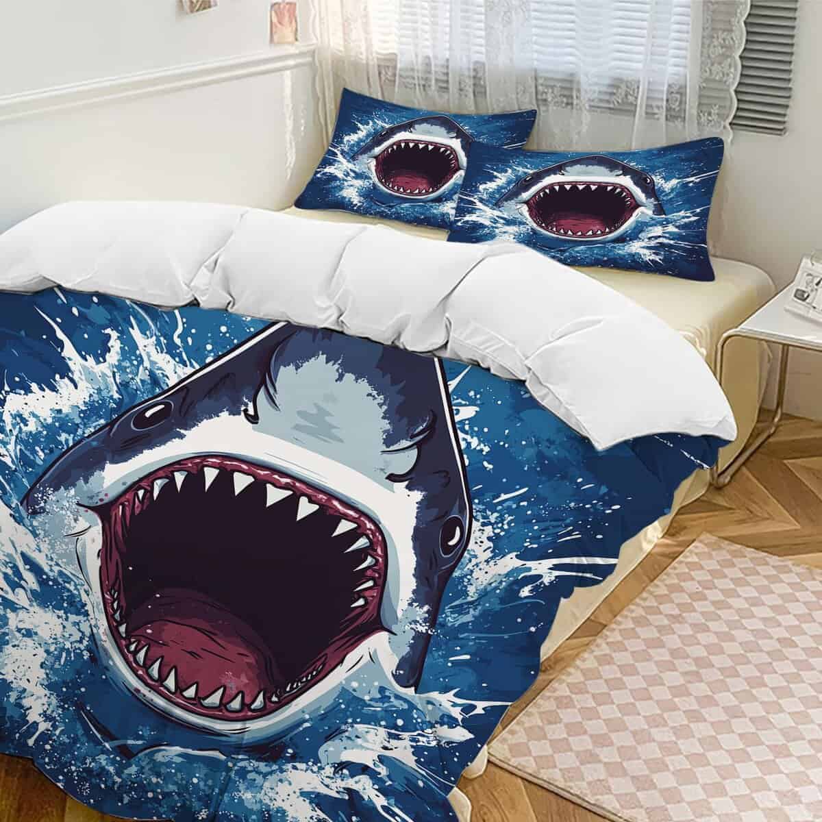Juego de Ropa de Cama con Tema de Tiburón, Funda Nórdica de