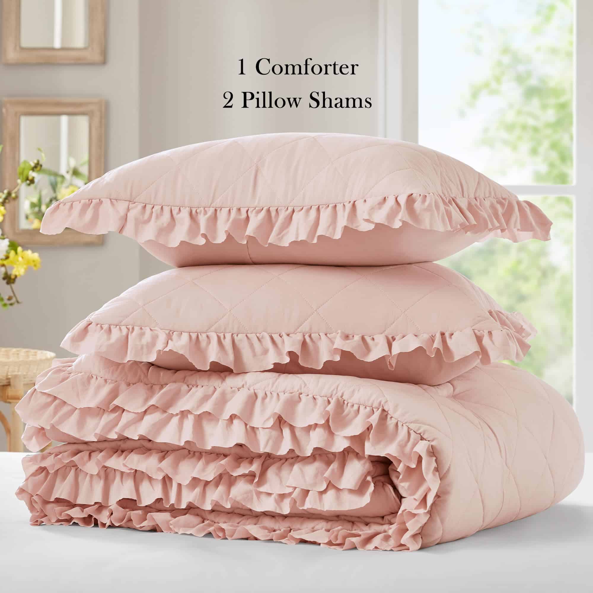 4. 3 Piezas disponibles en edredón con volantes Tamaño completo/Queen: 1 edredón con volantes (90 x 90 pulgadas), 1 fundas de almohada (20 x 26 pulgadas). Excelente idea de regalo para todos sus seres queridos en ocasiones especiales; sorprenda a sus amigos y familiares con estos juegos de edredón con volantes.