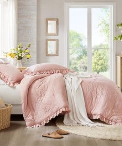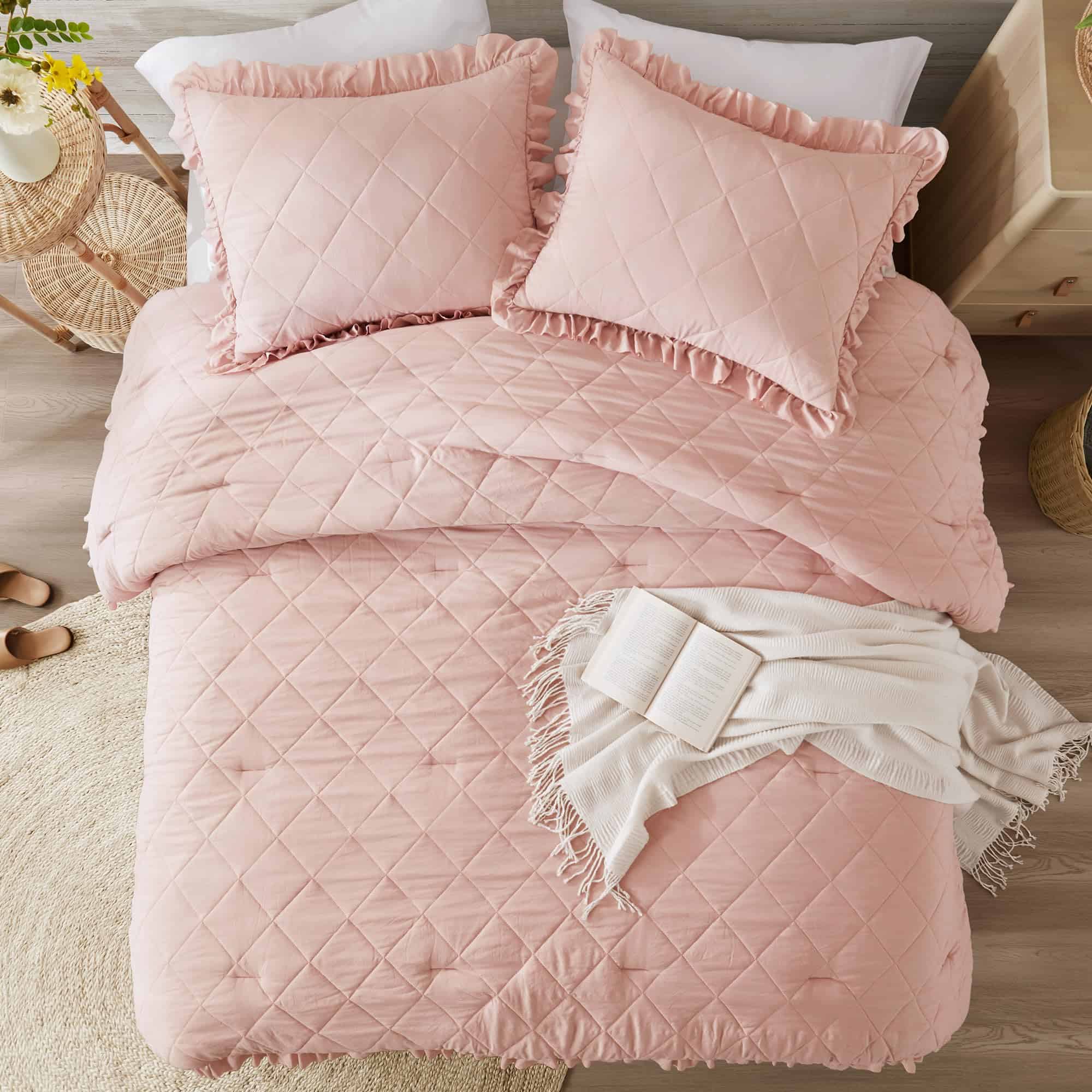 Juego de Ropa de Cama con Volantes en Rosa, Edredón de