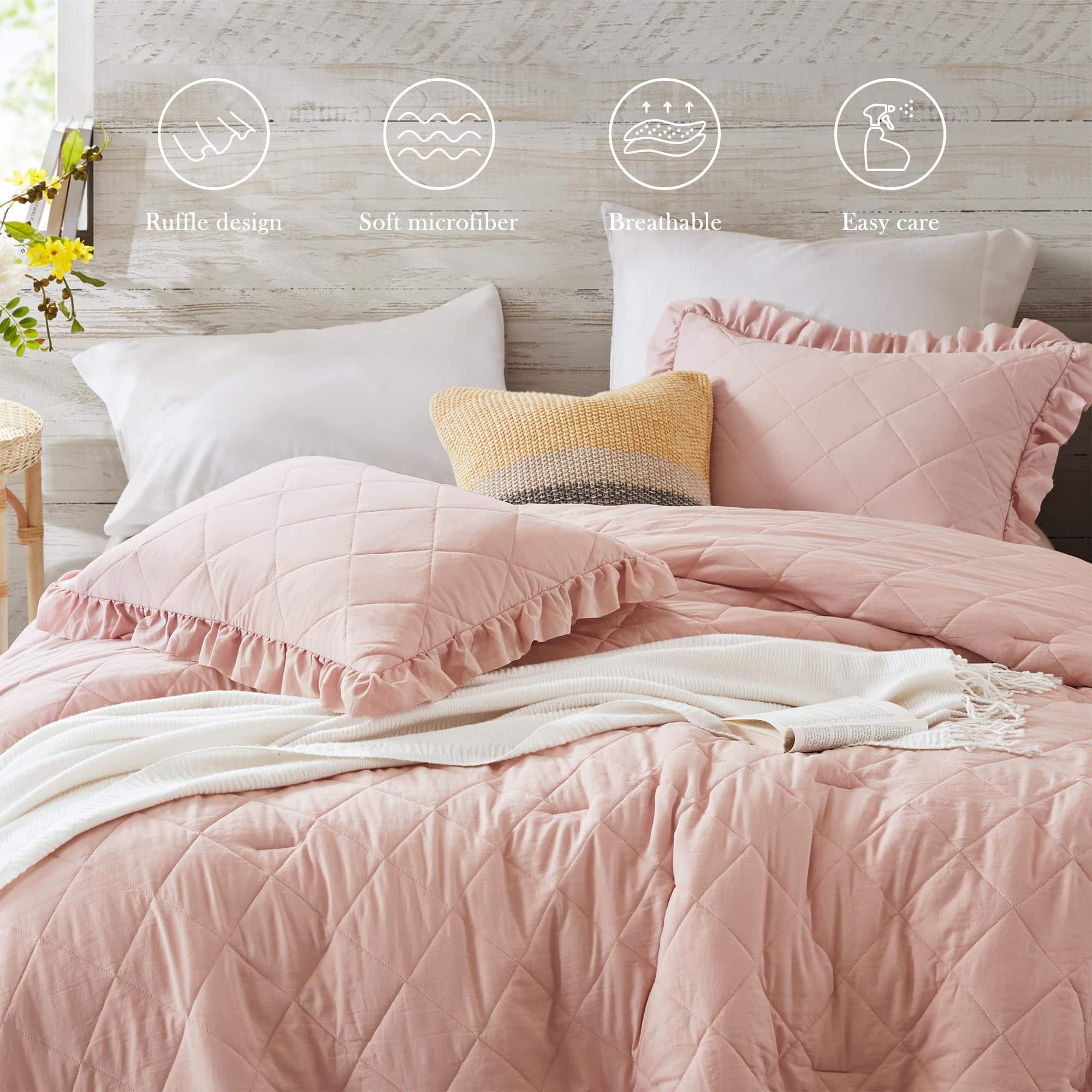 3. 2 Piezas disponibles en edredón con volantes Twin: 1 edredón con volantes (66 x 90 pulgadas), 1 funda de almohada (20 x 26 pulgadas). Excelente idea de regalo para todos sus seres queridos en ocasiones especiales; sorprenda a sus amigos y familiares con estos juegos de edredón con volantes.