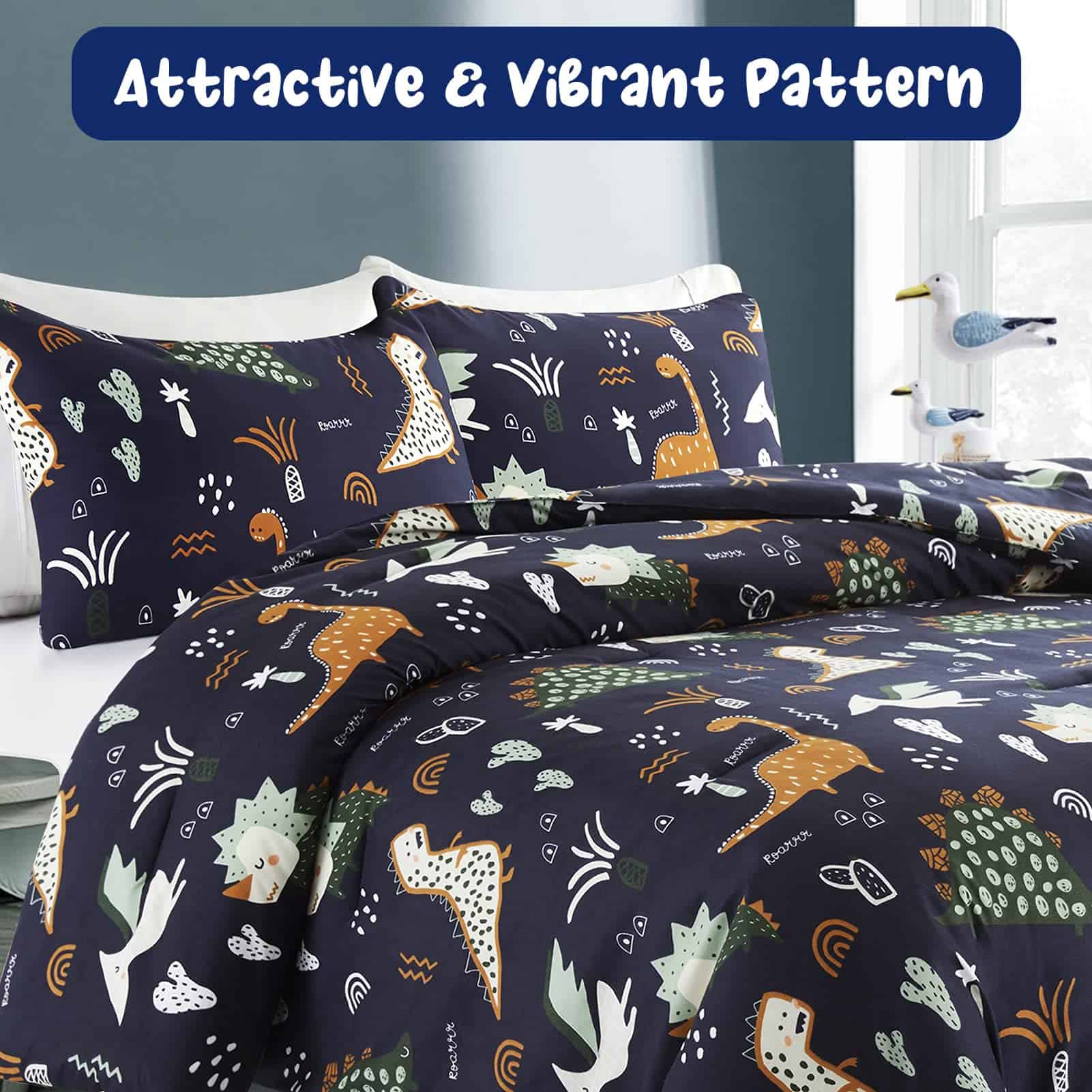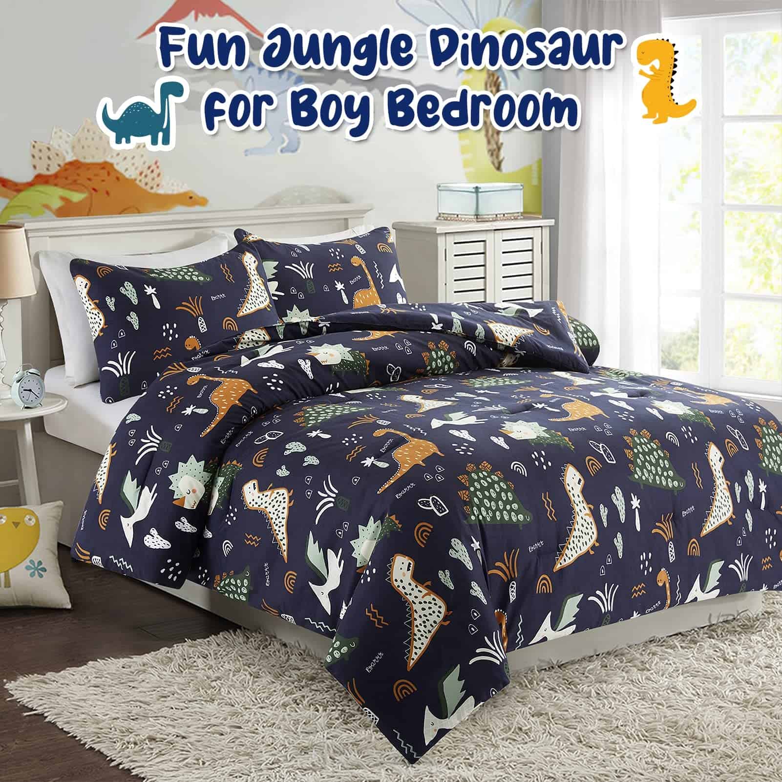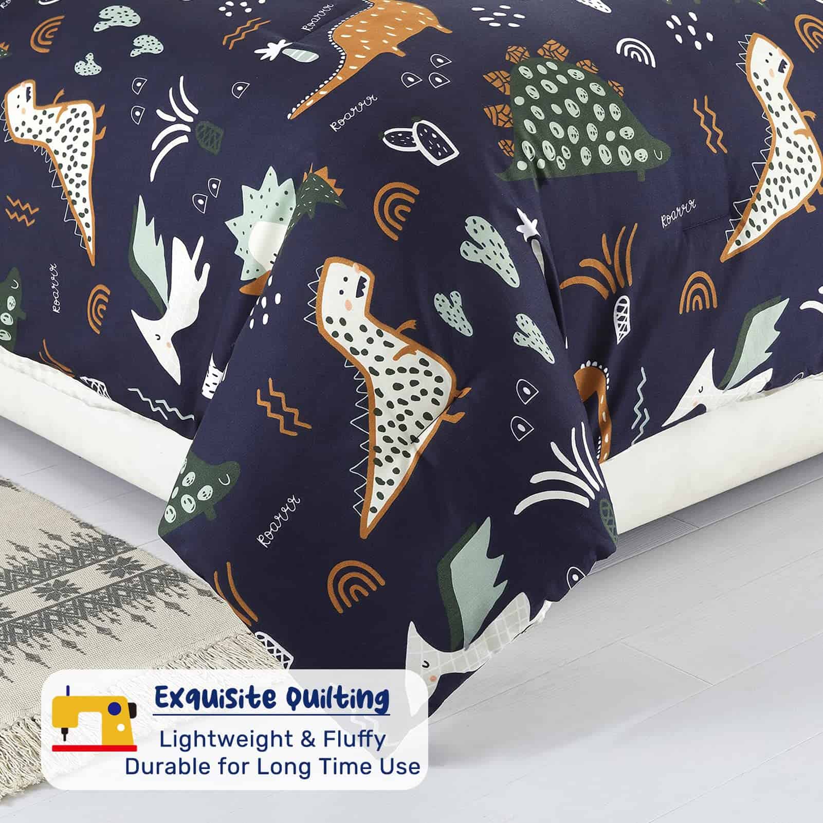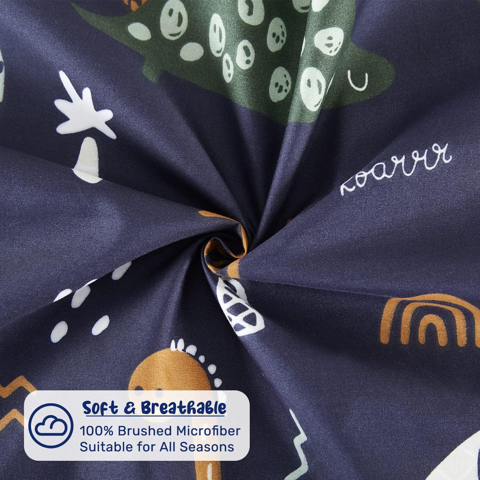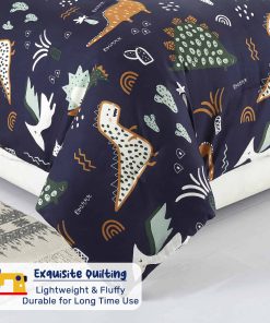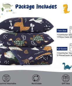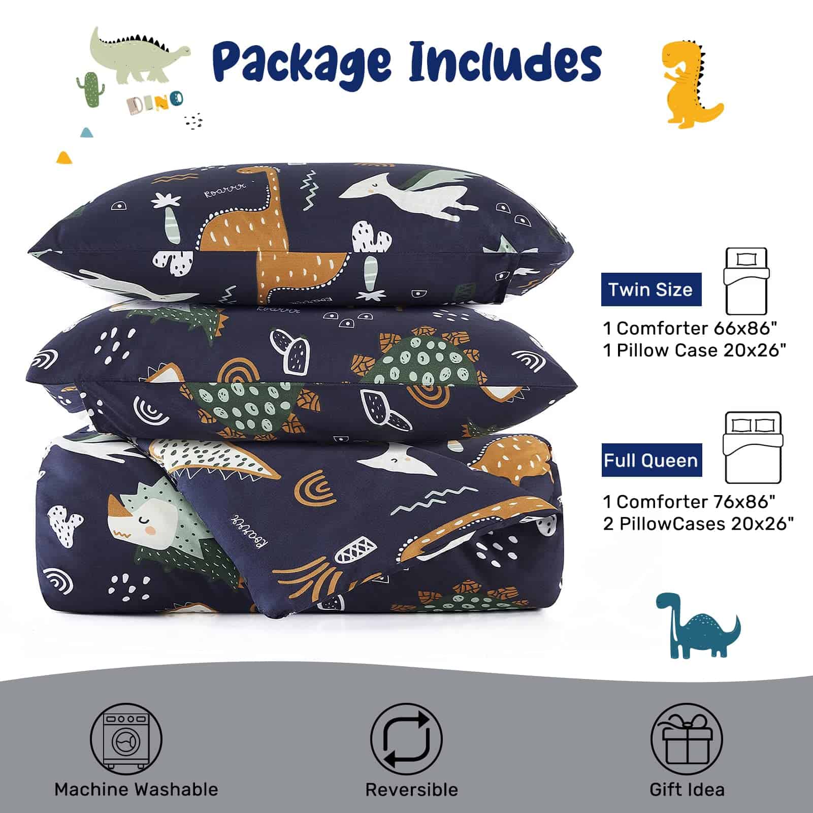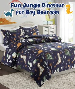 Este juego de ropa de cama de 2 piezas para niños en tamaño Twin cuenta con un diseño de dinosaurios lindos que añadirá un toque divertido a cualquier habitación. Hecho de 100% poliéster, es perfecto para la habitación de un adolescente o cuarto de invitados. El set incluye un edredón en tamaño Twin de 66″ x 86″ y una funda de almohada de 20″ x 26″. El relleno del edredón es 100% poliéster, lo que lo hace extra acogedor y cómodo de usar en todas las estaciones. Fácil de cuidar, se puede lavar a máquina en agua fría en ciclo suave, y simplemente secar al sol o en secadora a baja temperatura. ¡Hazte con este juego de ropa de cama para darle un toque único a tu espacio!