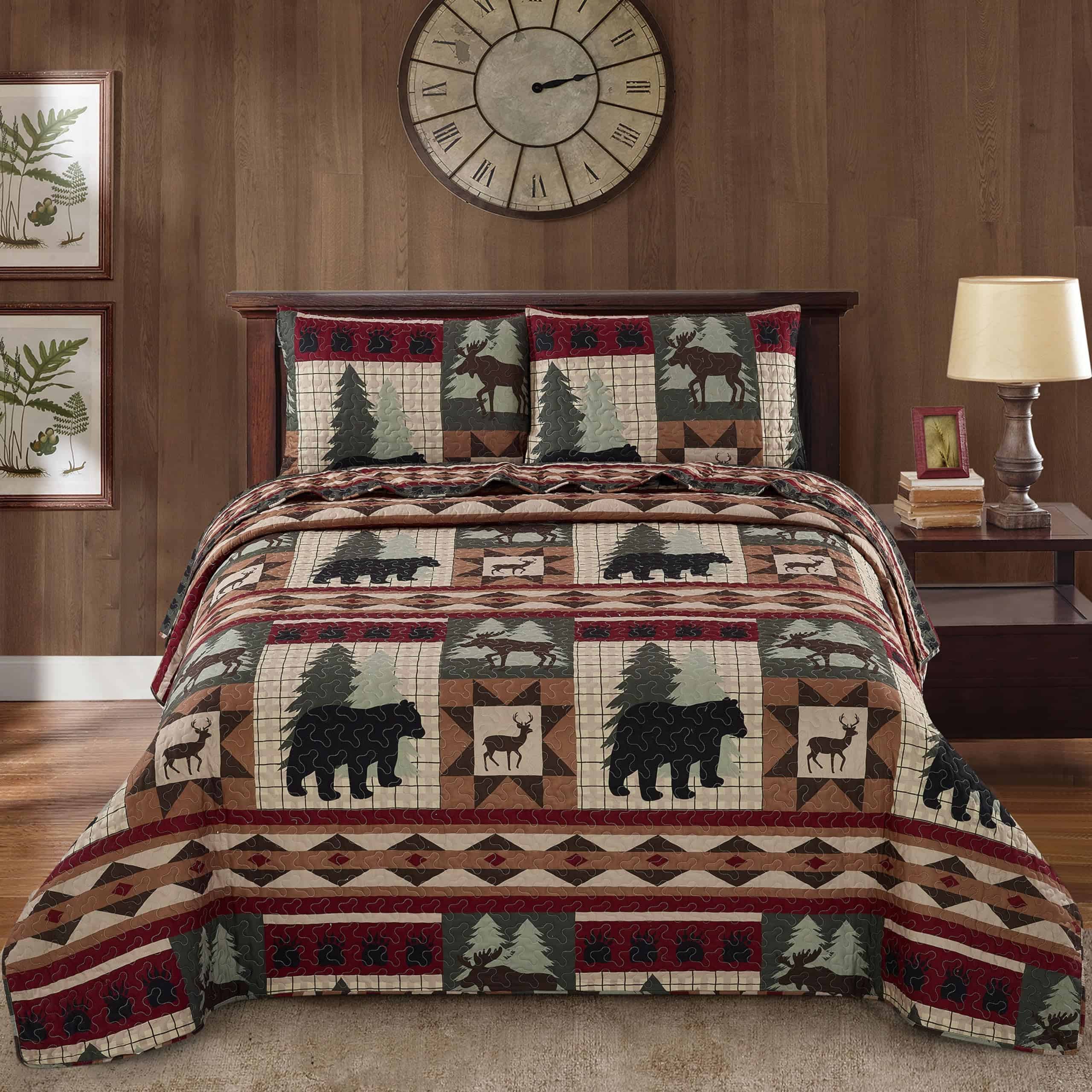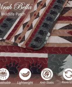 1. DECORACIÓN DE CABINA RÚSTICA: Trae la atmósfera de la vida en cabaña a tu hogar con nuestros diseños temáticos de vida silvestre. Nuestro edredón de estilo occidental viene con 2 fundas de almohada, un imprescindible para tu cabaña o lodge junto al lago. 2. EDREDÓN PARA CAMPING: Nuestro juego de edredón temático de vida silvestre de 2/3 piezas es reversible, para que puedas cambiar el aspecto de tus cubrecamas para tus invitados. Nuestros edredones son ideales para acurrucarte en el sofá, para muebles de cabaña de troncos e incluso como decoración de pared para tu cabaña. 3. JUEGOS DE EDREDÓN AMERICANA: La ropa de cama de granja del país basada en la frontera tiene un atractivo único vintage y hecho a mano, ofreciendo un aspecto personalizado. Nuestros edredones de país inspirados en los pioneros y en la América son una excelente adición a cualquier rancho, granja o RV. 4. EDREDONES DE GRANJA LIGEROS: Nuestro edredón temático de cabaña con decoraciones forestales está hecho de una mezcla de poliéster transpirable, lo que lo hace antipilling, resistente al estática y fácil de cuidar. Simplemente lávalo a máquina con frío en un ciclo suave y seca en baja. 5. VIRAH BELLA: Somos una empresa familiar especializada en mantas acogedoras, edredones de diseño y juegos de ropa de cama ligeros. Nuestro equipo es nuestra familia, al igual que nuestros clientes, y estamos orgullosos de estar involucrados y devolver a eventos comunitarios en nuestra ciudad natal.