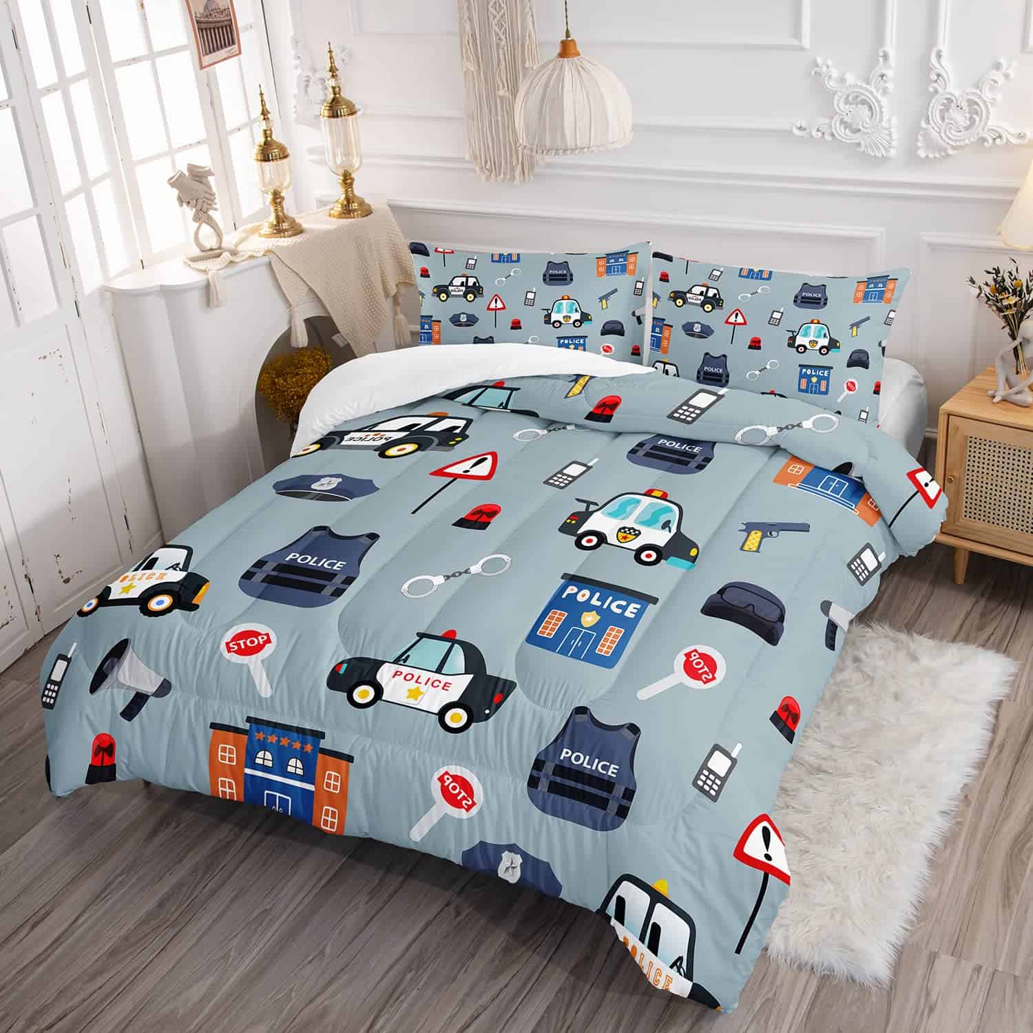 Juego de Ropa de Cama de Coche de Policía 3D BBchose para