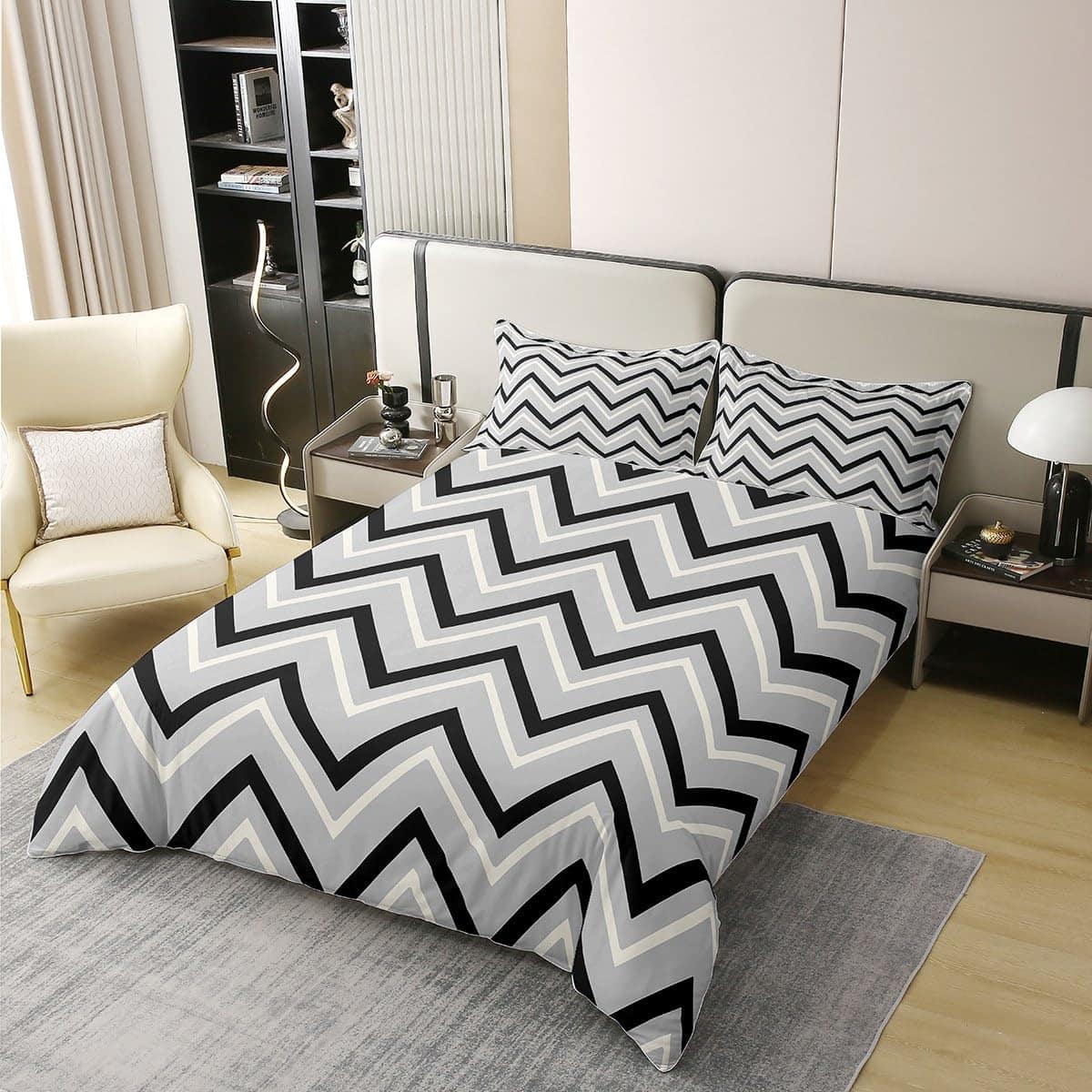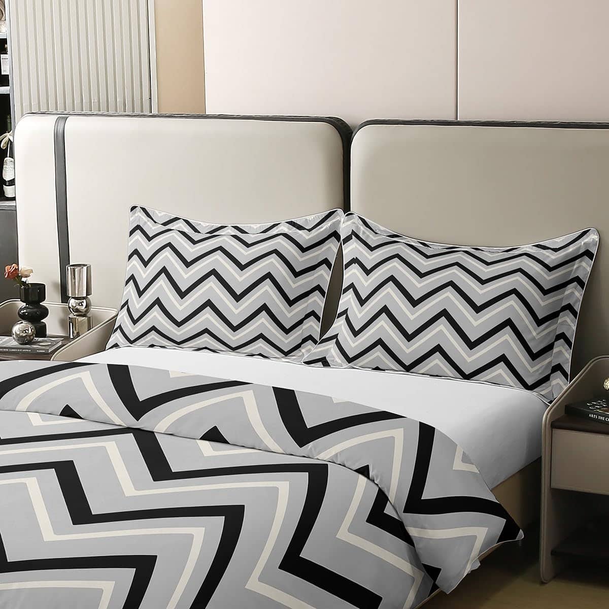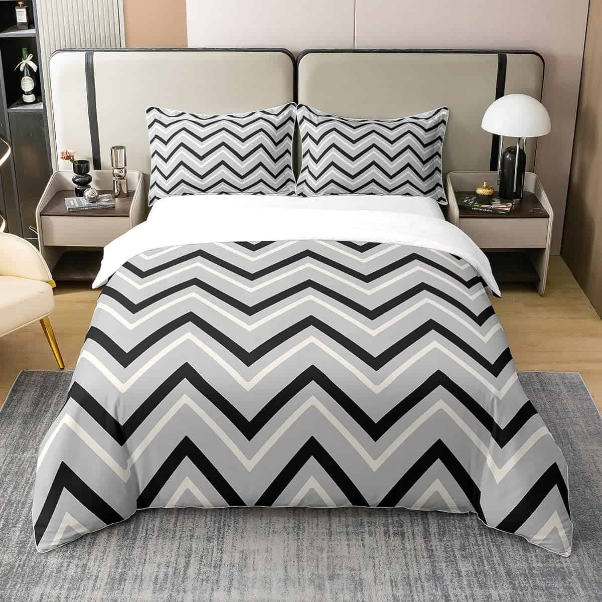 Juego de Ropa de Cama de Línea de Rayas Blancas Negras