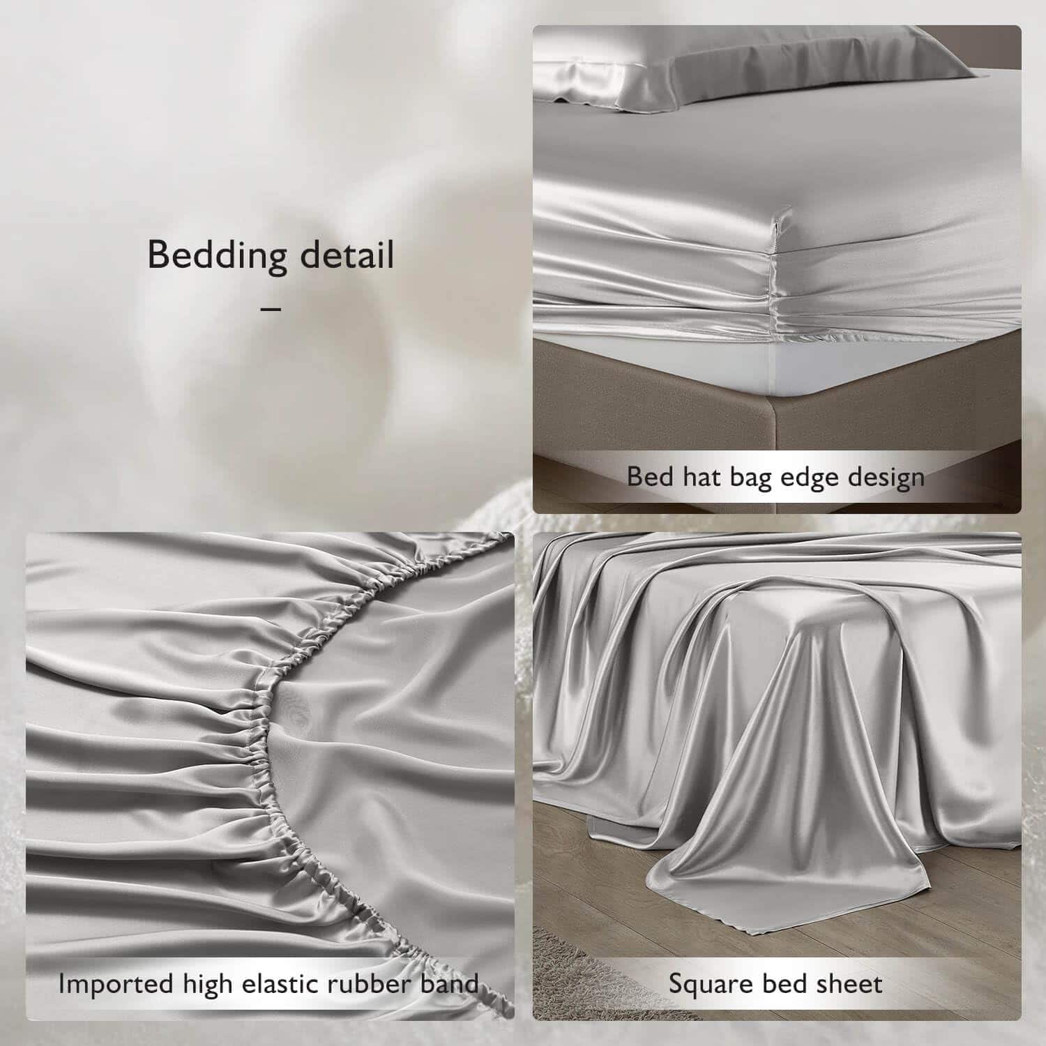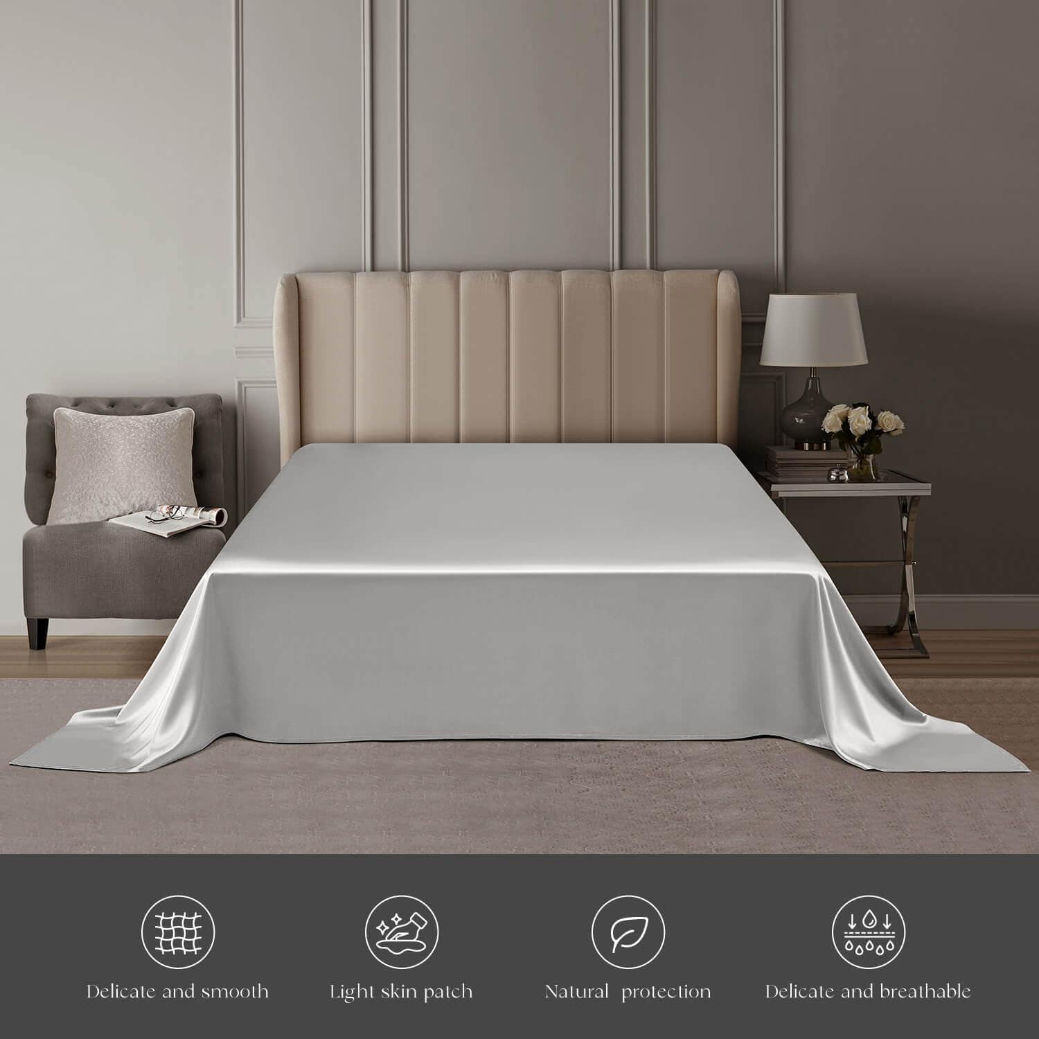 Juego de Ropa de Cama de Seda 100% Morera de -Gris Claro