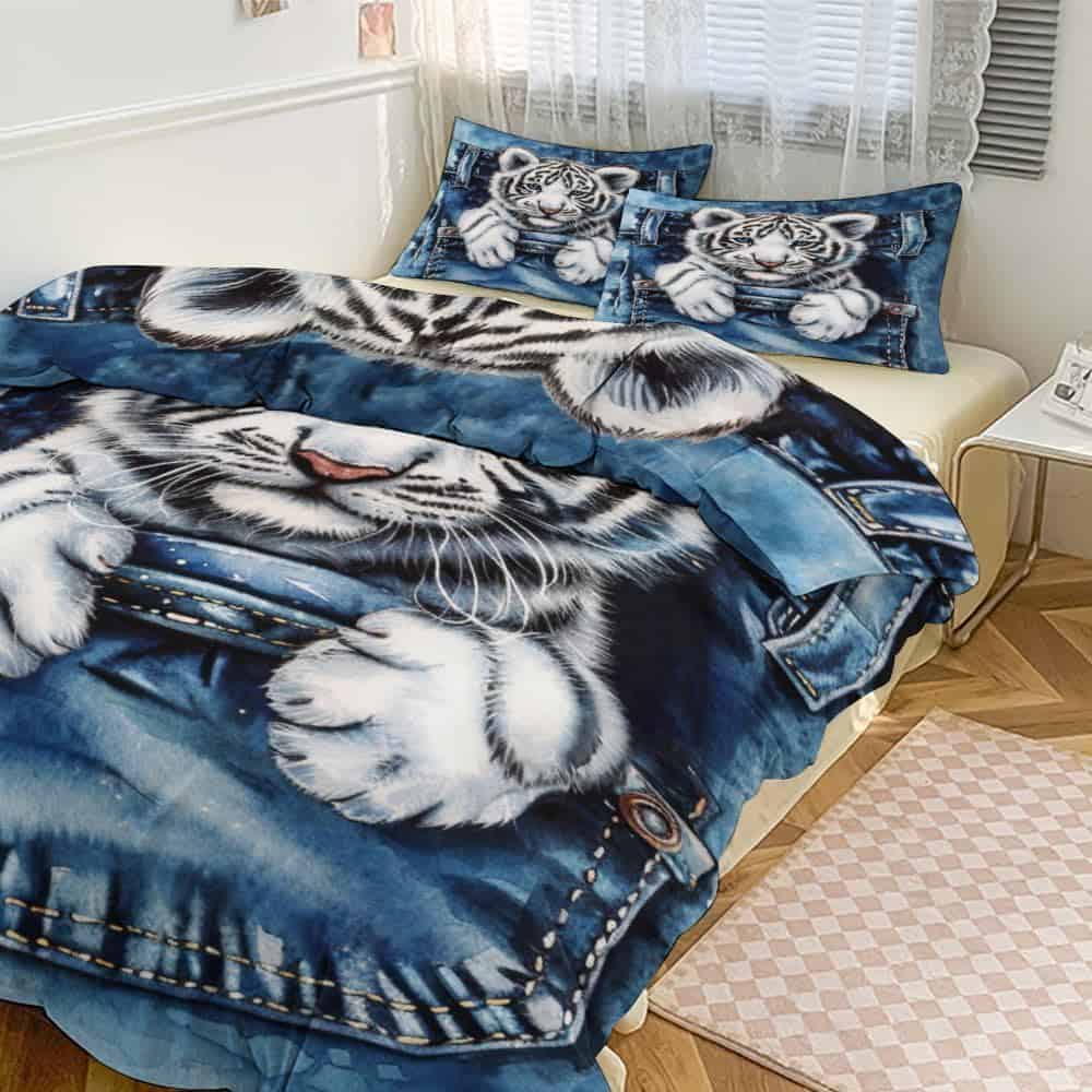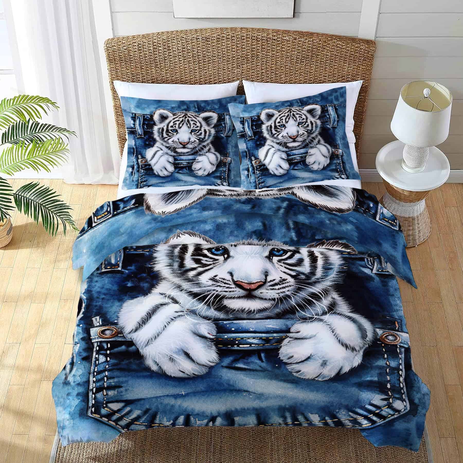 Juego de Ropa de Cama de Tigre, 3 Piezas, Tamaño Completo,