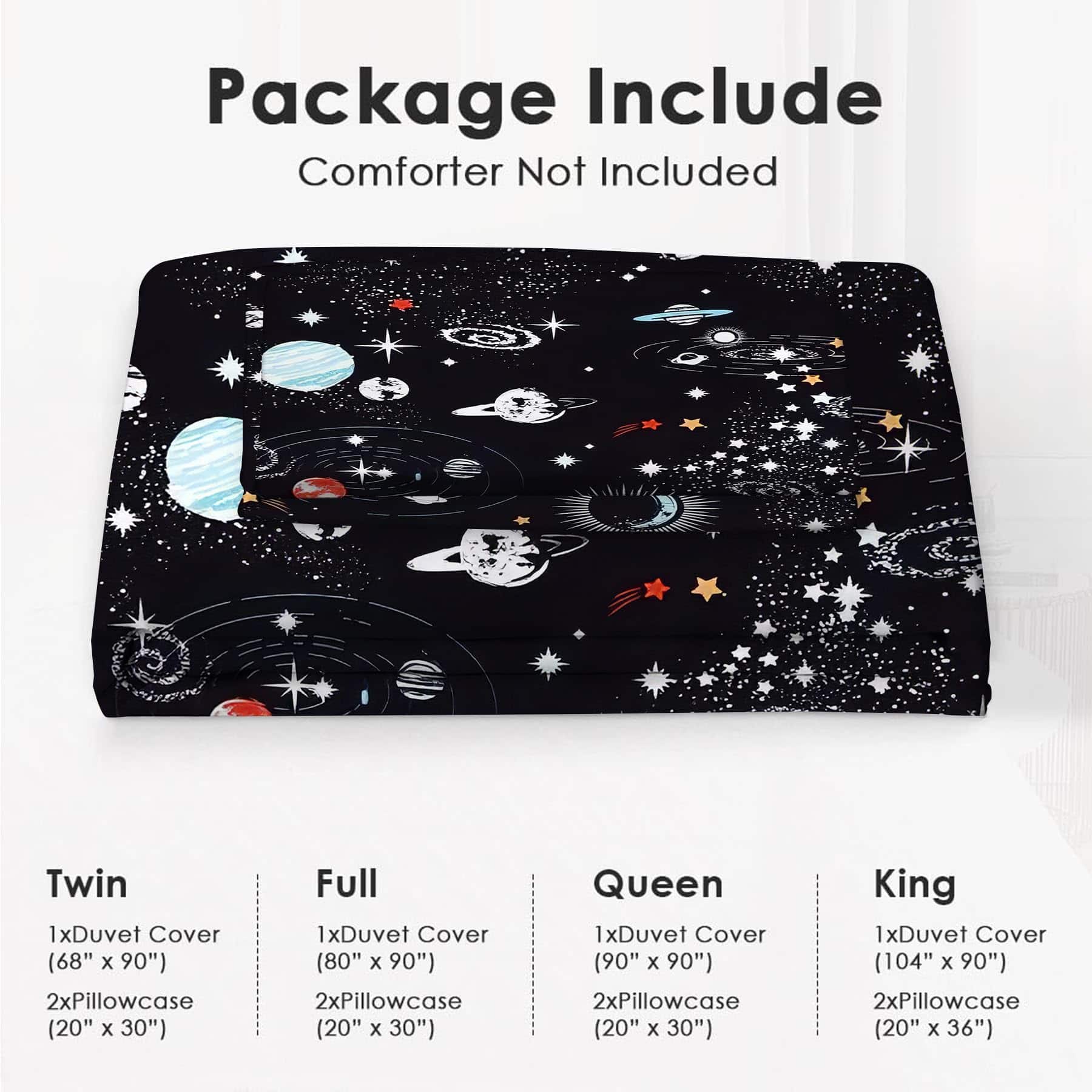 Tamaño Queen: 1 Funda de Edredón (90″ x 90″) y 2 Fundas de Almohada (20″ x 30″), Edredón no está incluido en el set.