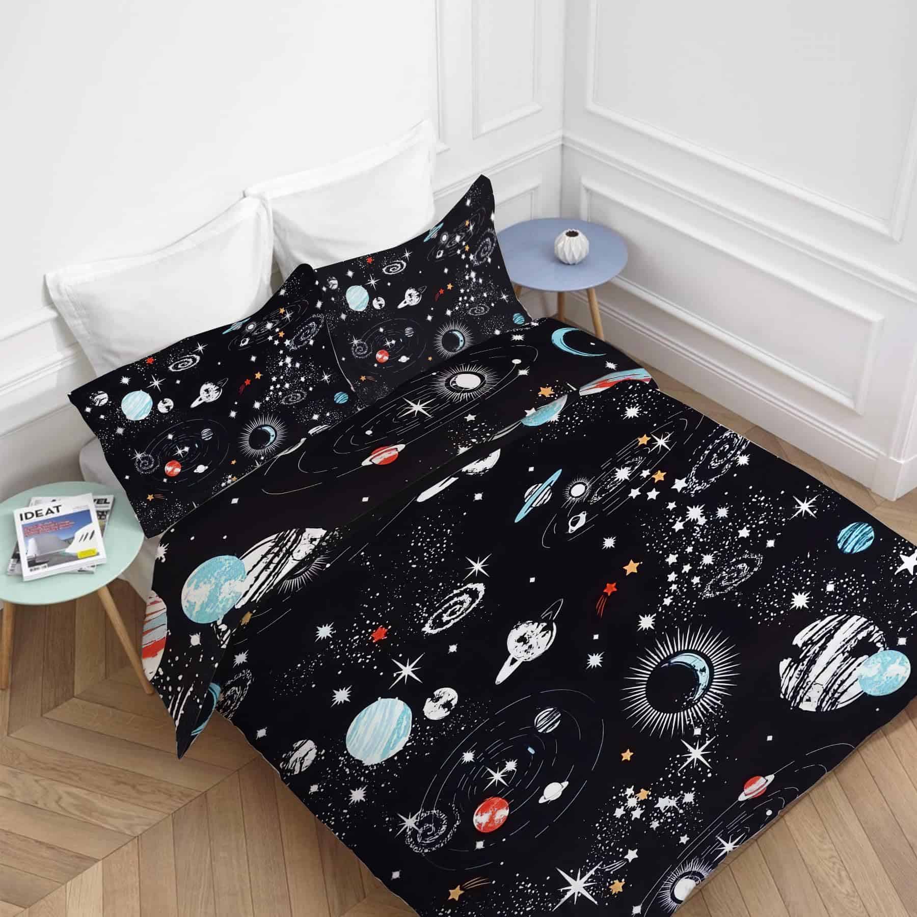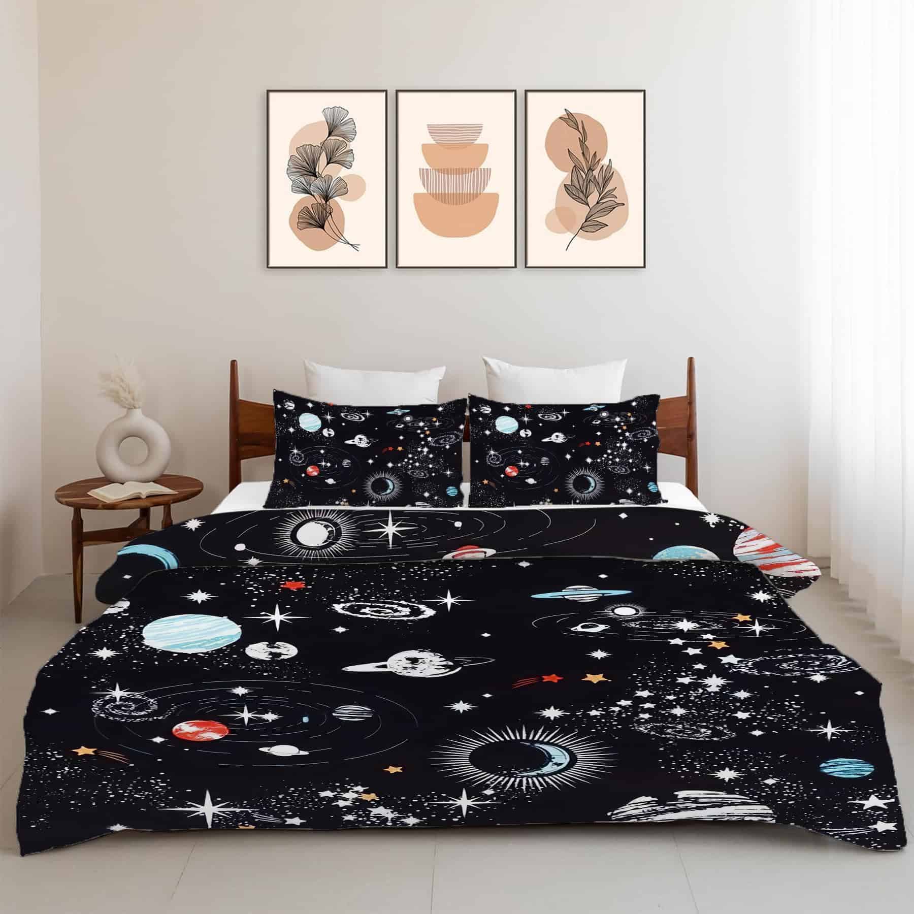 El set incluye una funda de edredón y dos fundas de almohada. Ya sea como decoración de dormitorio o elección de regalo, está diseñado para usuarios que buscan comodidad y personalización. Este juego de cama de tres piezas no solo mejora la calidad del sueño, sino que también hace que el estilo de tu dormitorio sea más personalizado y moderno. Hecho con materiales de alta calidad, este juego de ropa de cama garantiza comodidad y durabilidad, agregando un toque vibrante a tu dormitorio.