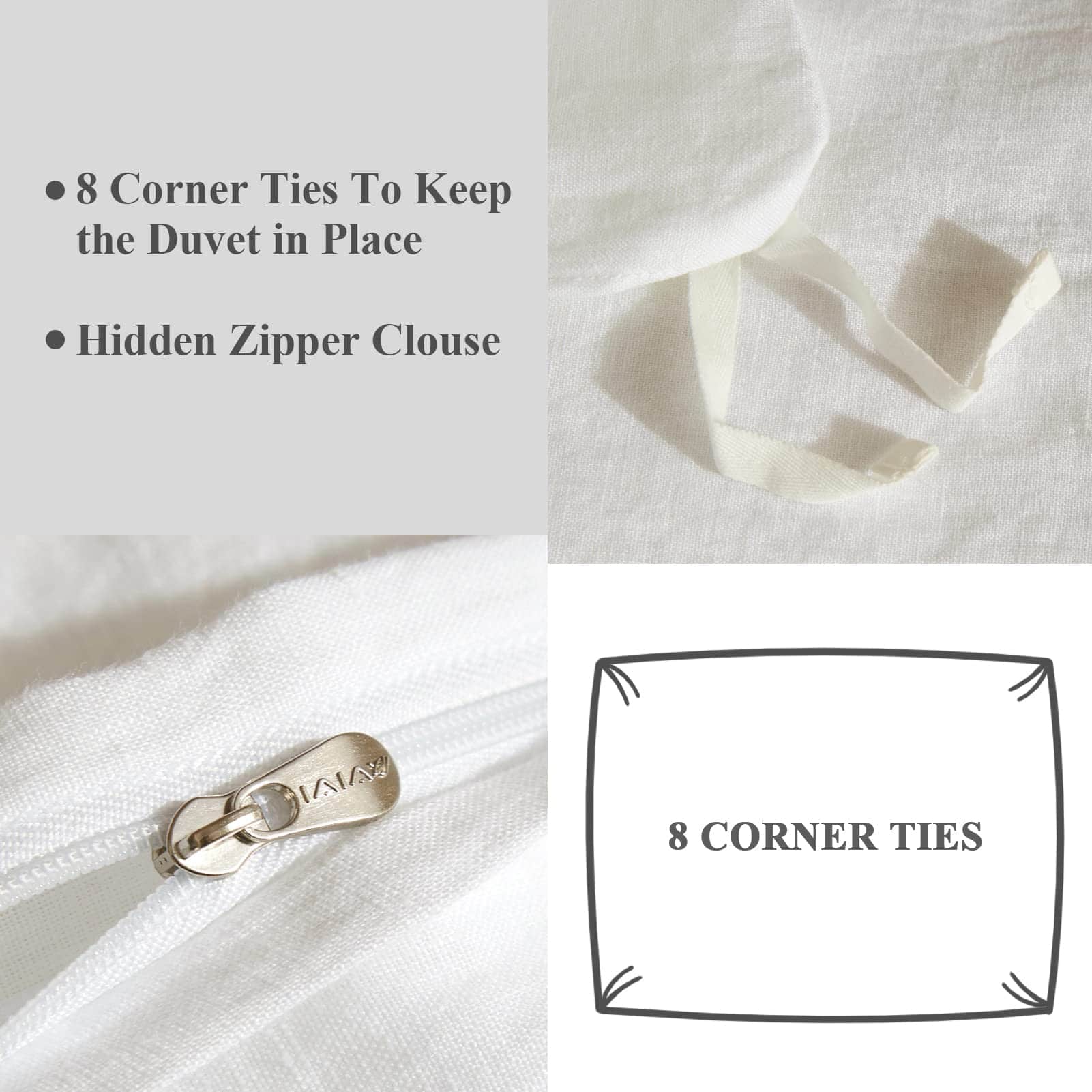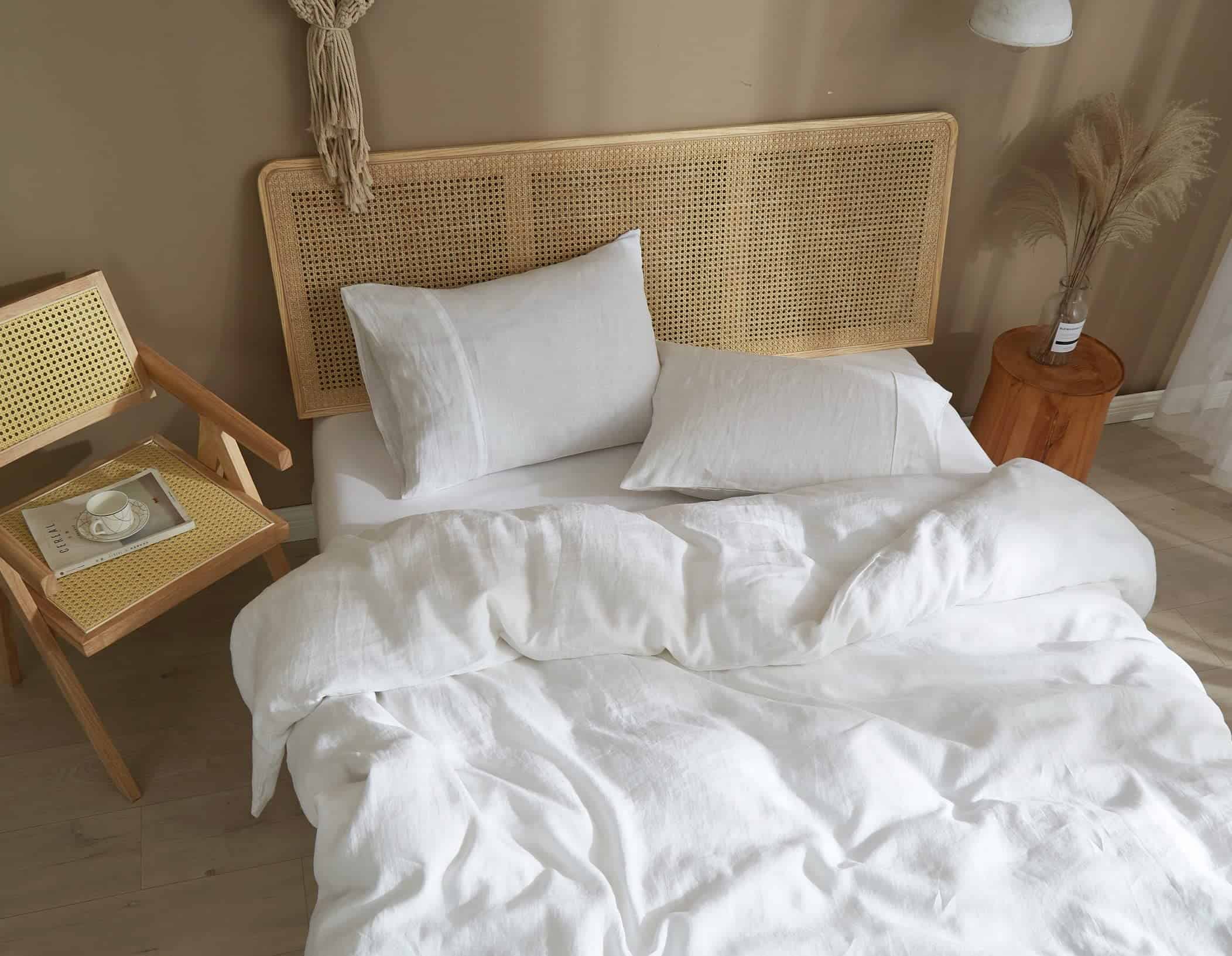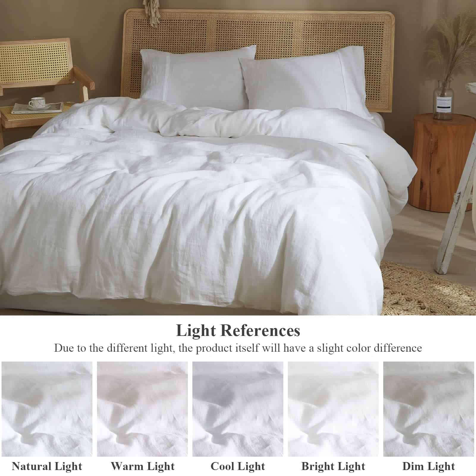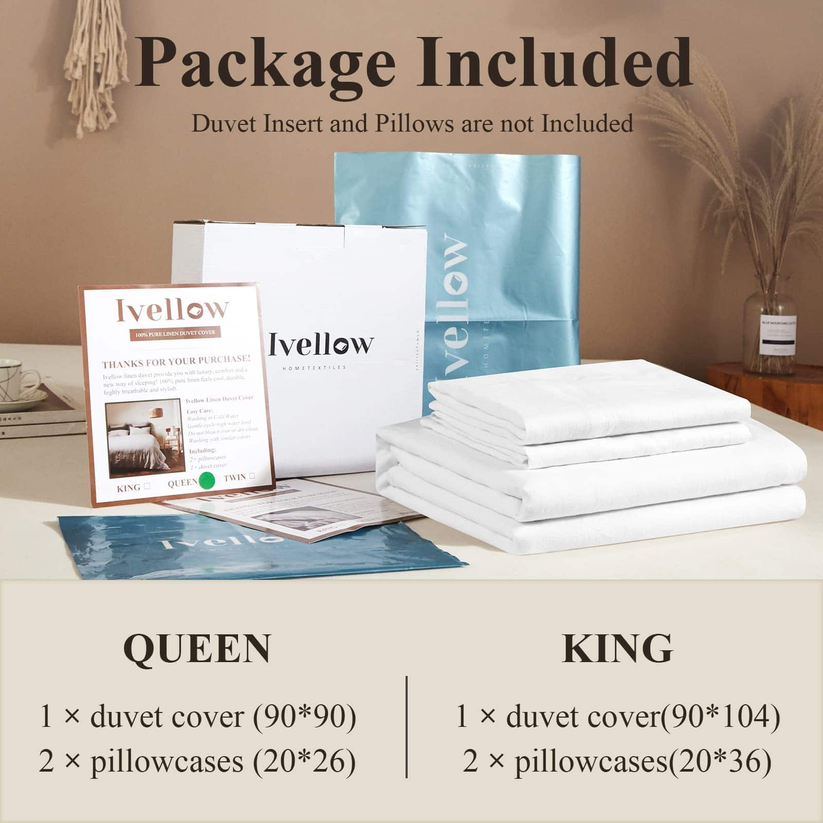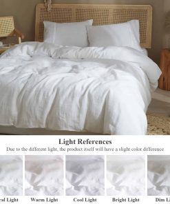 Nuestro juego de ropa de cama Ivellow está hecho de lino francés puro de alta calidad, certificado por OEKO-TEX STANDARD 100 para garantizar su origen sostenible y apego a estándares ecológicos. El lino es una fibra natural conocida por su durabilidad, suavidad y características hipoalergénicas. La técnica de lavado a la piedra utilizada en la fabricación del juego de funda de edredón asegura una textura suave y acogedora, perfecta para un descanso reparador. La funda de edredón queen viene con una cremallera oculta de alta calidad y 8 lazos en las esquinas para fijar el edredón en su lugar y evitar movimientos no deseados. Las fundas de almohada tienen cierre tipo sobre para una fácil colocación y extracción de las almohadas. El material de lino es adecuado para todas las estaciones, manteniéndote fresco en verano y cálido en invierno gracias a su capacidad de absorber y liberar la humedad. Con 170 GSM, nuestro juego de funda de edredón es resistente y duradero, garantizando años de uso sin deterioro. Para un mantenimiento sencillo, se puede lavar a máquina en frío y secar a temperatura baja. Disfruta de la elegancia y la comodidad de nuestro juego de ropa de cama Ivellow y mejora tu calidad de descanso.