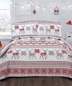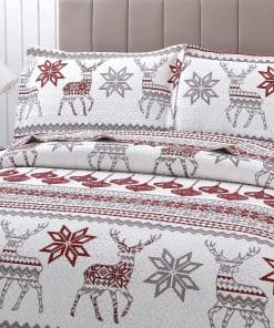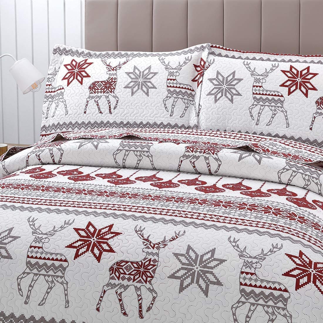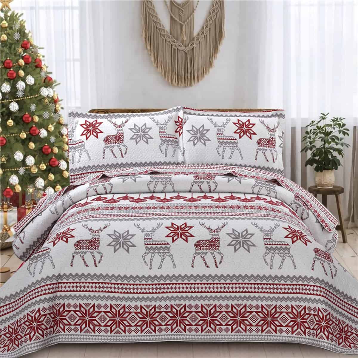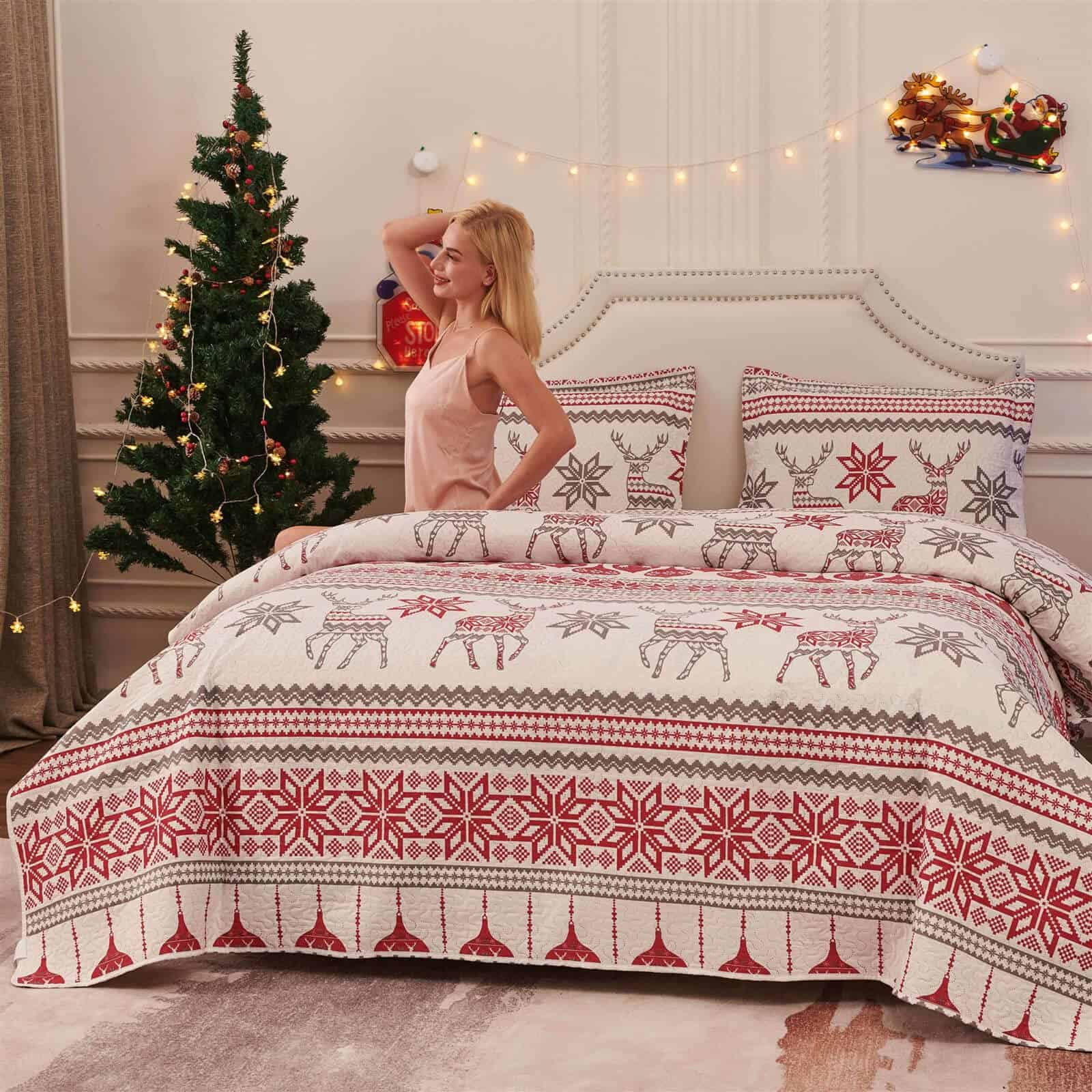 1. Conjunto de colcha King de 3 piezas para Navidad: El conjunto de colcha tamaño king incluye una colcha de Navidad tamaño king (96″ x 108″), 2 fundas de almohada king estándar a juego (20″ x 36″ + 2″). La colcha king de Navidad brinda calidez a tu dormitorio en clima frío, puedes ponerla encima o debajo de un edredón para mantenerte abrigado en invierno o simplemente usarla como una manta o ropa de cama decorativa, también se puede usar como cubrecama, colcha, sábana o cubrecama de cama.