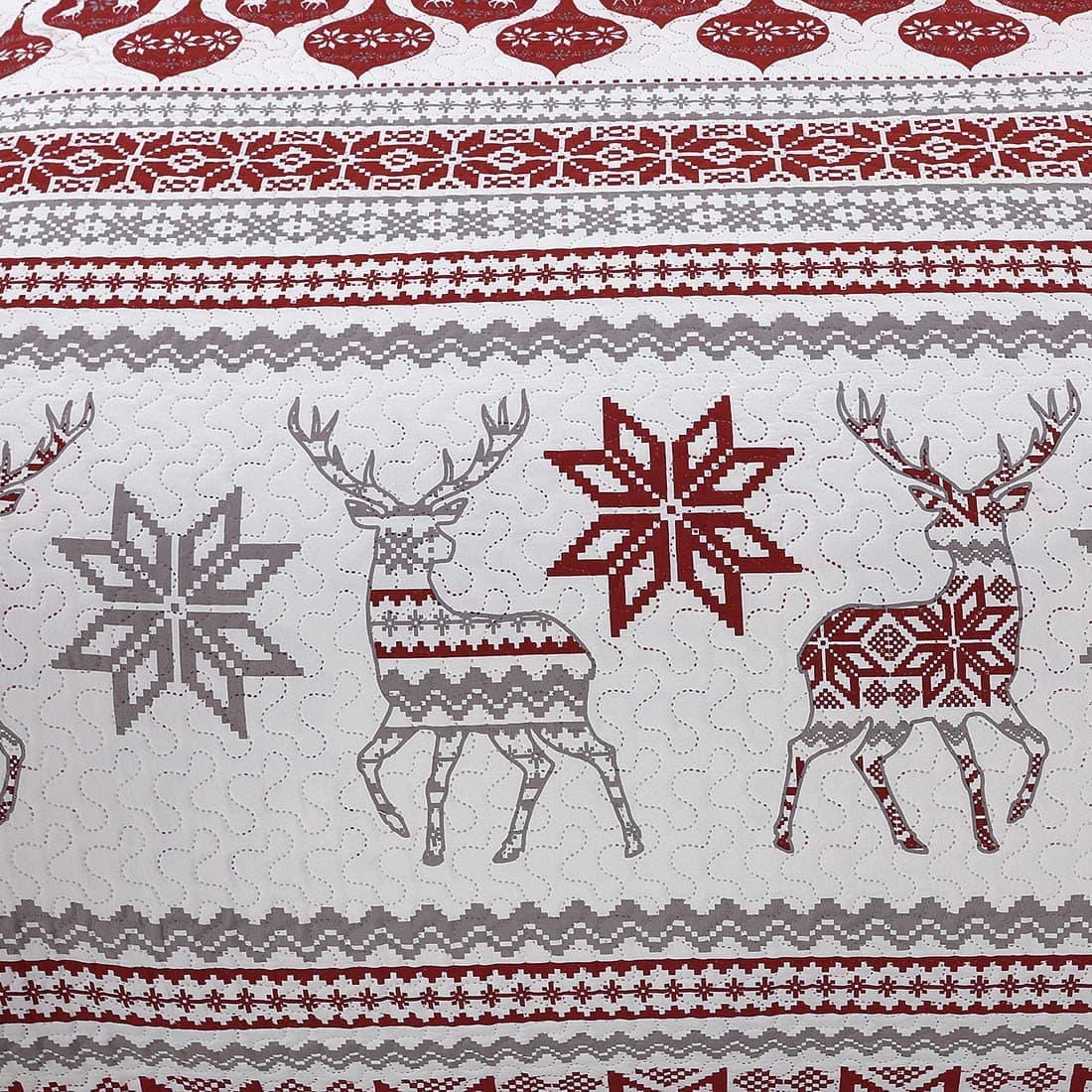 Juego de ropa de cama de vacaciones hechas con tela de microfibra de poliéster de 80 GSM, relleno de algodón liviano de 120 GSM, muy suave al tacto y te hace sentir cálido y transpirable cuando duermes. Este juego de edredón tamaño king es ligero y cómodo de usar durante la temporada cálida o como una cubierta decorativa sobre una manta pesada en clima frío. Lavable a máquina en caliente, secar a baja temperatura, planchar a baja temperatura si es necesario. Material duradero y de alta calidad diseñado para durar. Cada conjunto de colcha viene con una hermosa caja de regalo con patrón de Navidad.