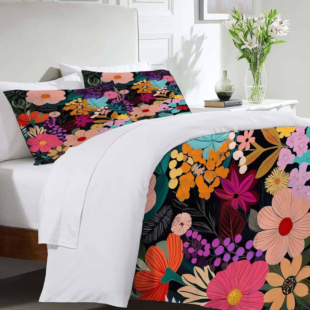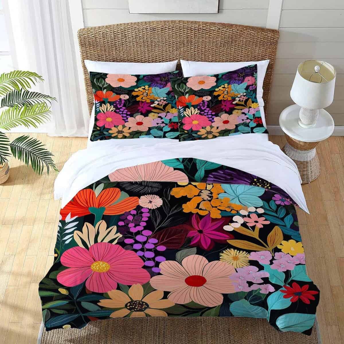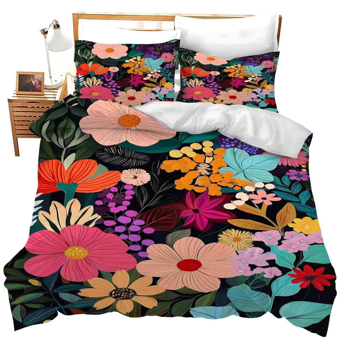 Juego de Ropa de Cama King Floral Hojas de Flores Coloridos
