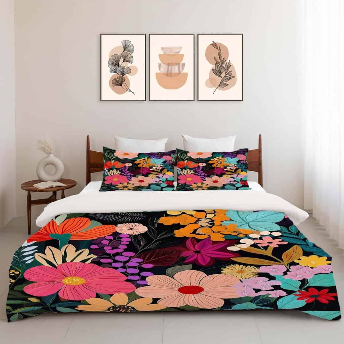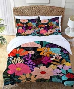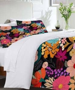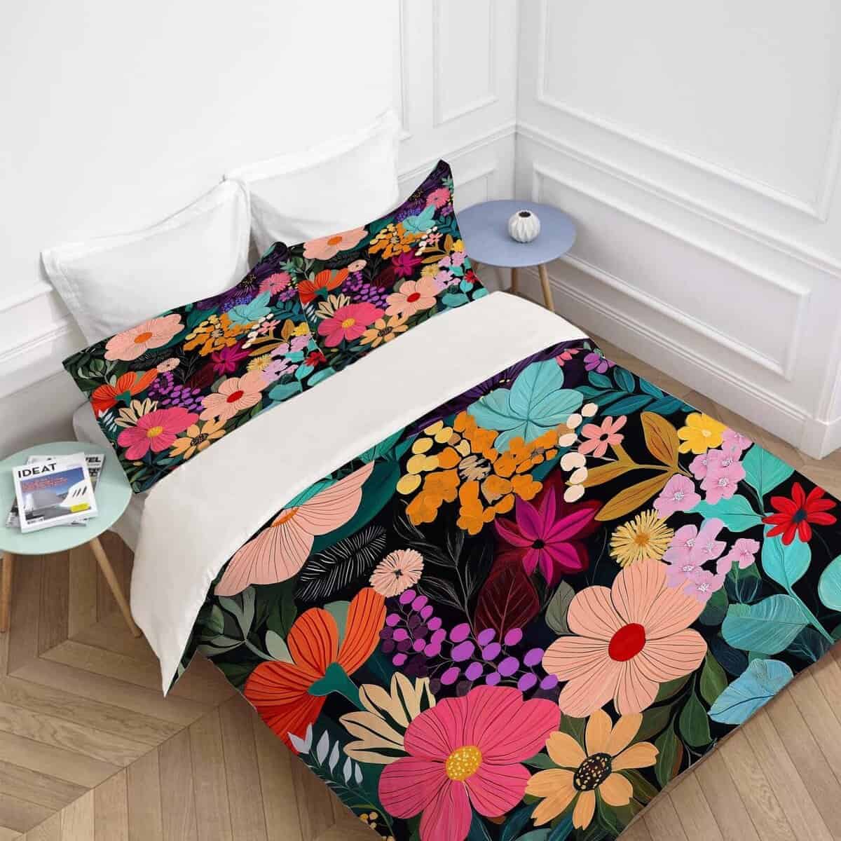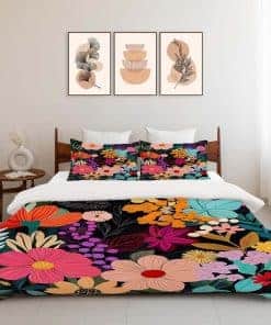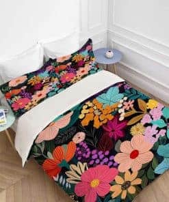Juego de Ropa de Cama King Floral Hojas de Flores Coloridos