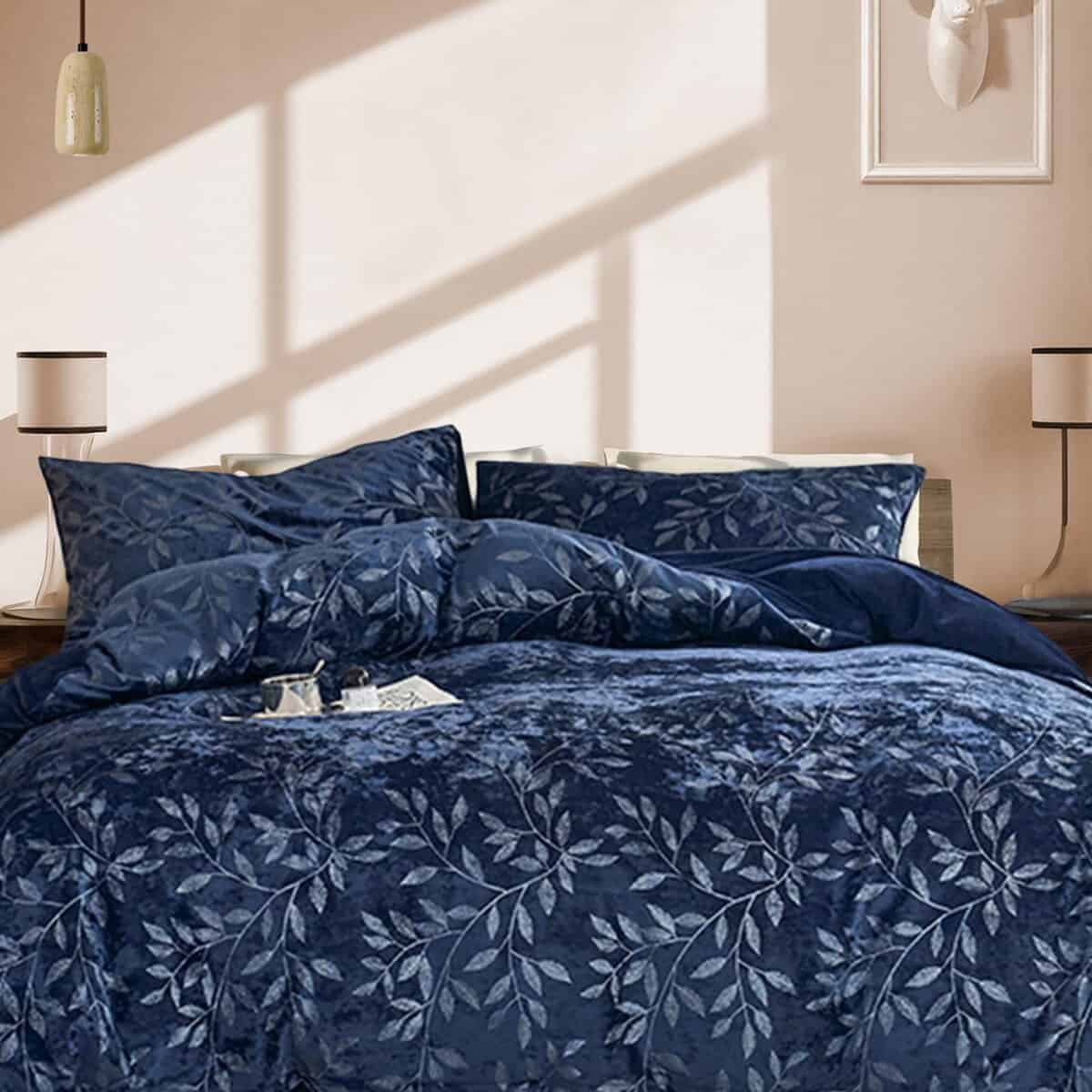 2. Diseño único y elegante: patrón de hojas y diseñado en técnica de estampado en caliente, hace que el juego de ropa de cama de terciopelo moduskye sea más moderno y lujoso que otros juegos de edredón lisos, decorando perfectamente tu habitación y habitación de invitados.