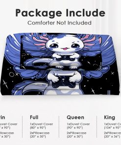 Un juego de ropa de cama para juegos de Axolotl es la funda nórdica para juegos lo que la funda de almohada es para las almohadas. Una funda nórdica es una capa protectora que se desliza sobre el edredón y tiene un cierre de cremallera oculto. Los edredones y los edredones son caros y difíciles de limpiar, las fundas nórdicas protegen tu edredón durante el uso y se pueden quitar fácilmente para lavar. Tamaño y Paquete Incluido: Tamaño twin: 1 funda nórdica (68″ x90″) y 1 funda de almohada (20″ x 30″). No incluye edredón en el set. Tamaño completo: 1 funda nórdica (80″ x 90″) y 2 fundas de almohada (20″ x 30″). No incluye edredón en el set. Tamaño queen: 1 funda nórdica (90″ x 90″) y 2 fundas de almohada (20″ x 30″). No incluye edredón en el set. Tamaño king: 1 funda nórdica (104″ x 90″) y 2 fundas de almohada (20″ x 36″). No incluye edredón en el set.