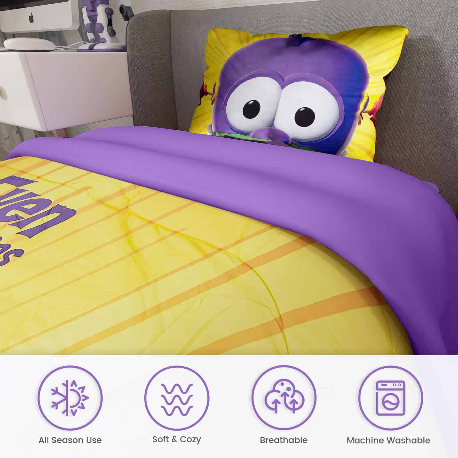 1. Suave y Cómodo: Este juego de ropa de cama gemela para niños está hecho de 100% microfibra y el relleno del edredón es 100% poliéster; el material de microfibra es increíblemente suave y liso, manteniendo a sus hijos calientes y acogedores toda la noche. Un juego de ropa de cama como una nube que es cómodo para todas las estaciones.