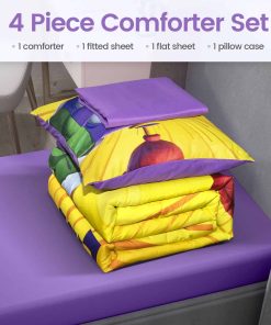 4. Cuidado Fácil – Puede meter el juego de edredón gemelo para niños y niñas en la lavadora y secadora sin preocuparse por que los colores se desvanezcan. Ciclo suave, secar a temperatura baja, planchar en frío si es necesario. Como el edredón está empaquetado en una bolsa, podría haber algunas arrugas inicialmente cuando lo reciba. Puede ponerlo en la secadora a fuego lento para ayudar a quitar las arrugas y esponjar la ropa de cama.