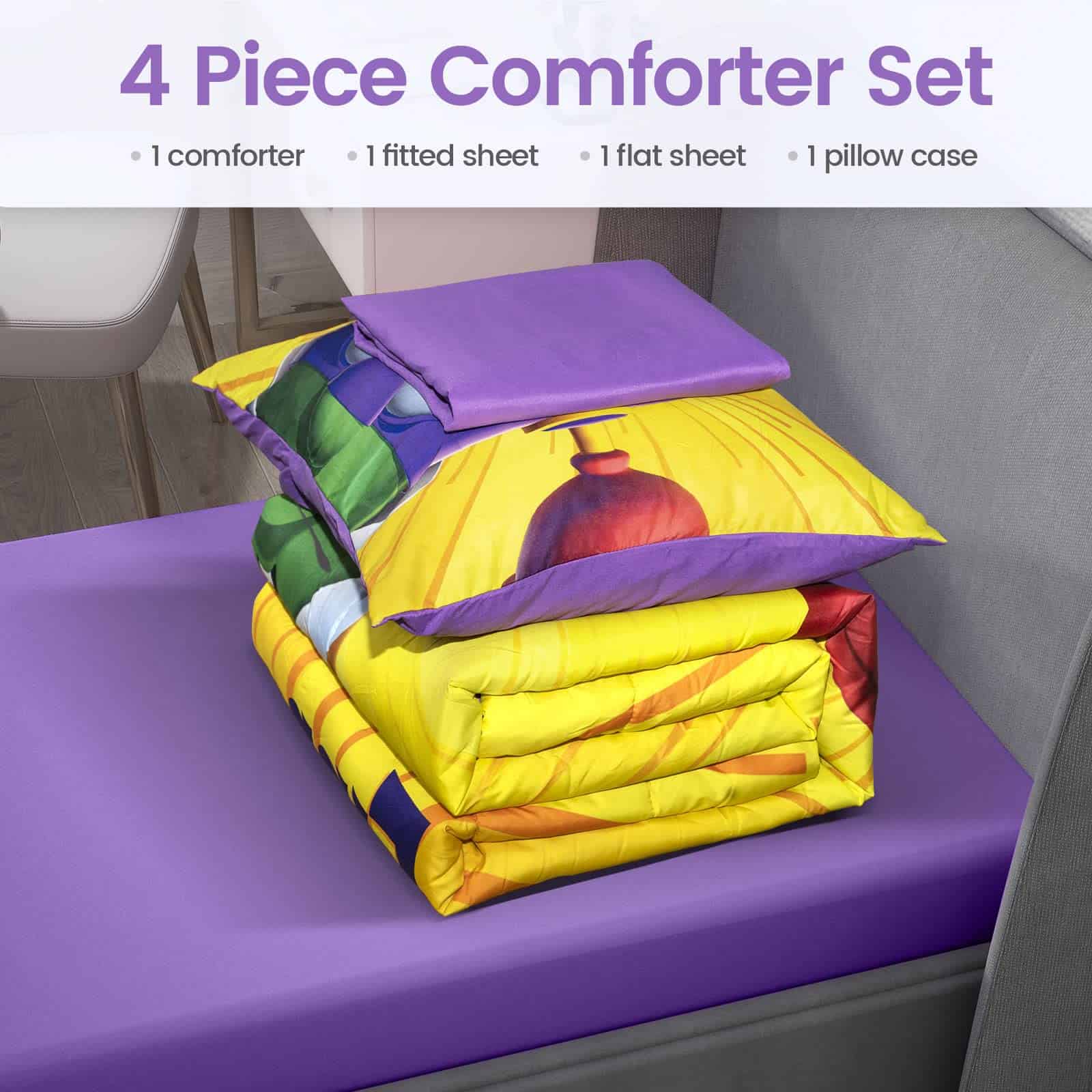 5. Gran Set de Regalo – Este juego de cama gemelo es una gran elección para sus queridos hijos (niños y niñas) como regalo de cumpleaños o como regalo especial de vacaciones, y hará sonreír a cualquier niño. Este juego de edredón se enrolla para un almacenamiento y viaje fácil
