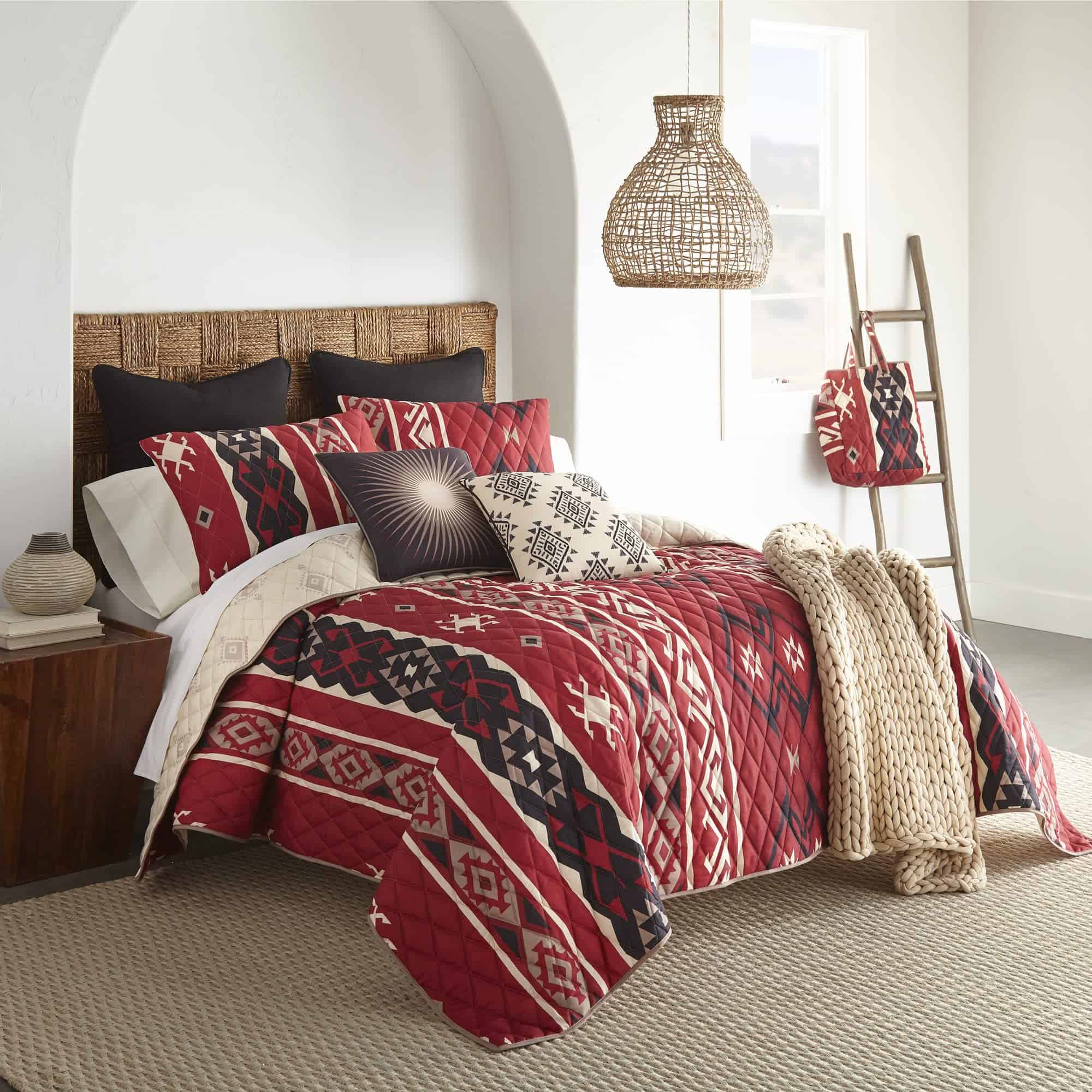 1. El juego de colcha Queen incluye 1 colcha reversible de Queen 90″x 90″ y 2 fundas de almohada estándar 20″x 26″. 2. Este conjunto de ropa de cama acolchado es un conjunto llamativo que presenta un audaz diseño de rayas del suroeste, basado en uno de nuestros patrones más vendidos y reversible a un patrón de diamantes del suroeste. 3. Este conjunto de ropa de cama de colcha tiene una cubierta de poliéster y el relleno es de poliéster. 4. Nuestra ropa de cama del suroeste es perfecta para cualquier casa, apartamento, cabaña o albergue. 5. Instrucciones de cuidado: Lavar a máquina en caliente y secar a baja temperatura. No usar lejía.