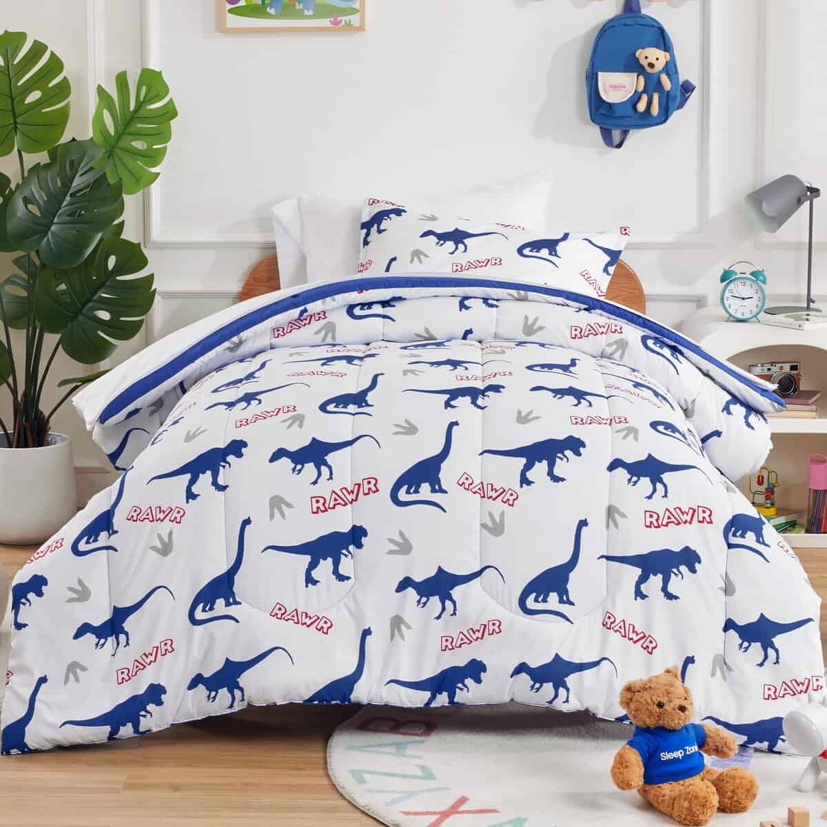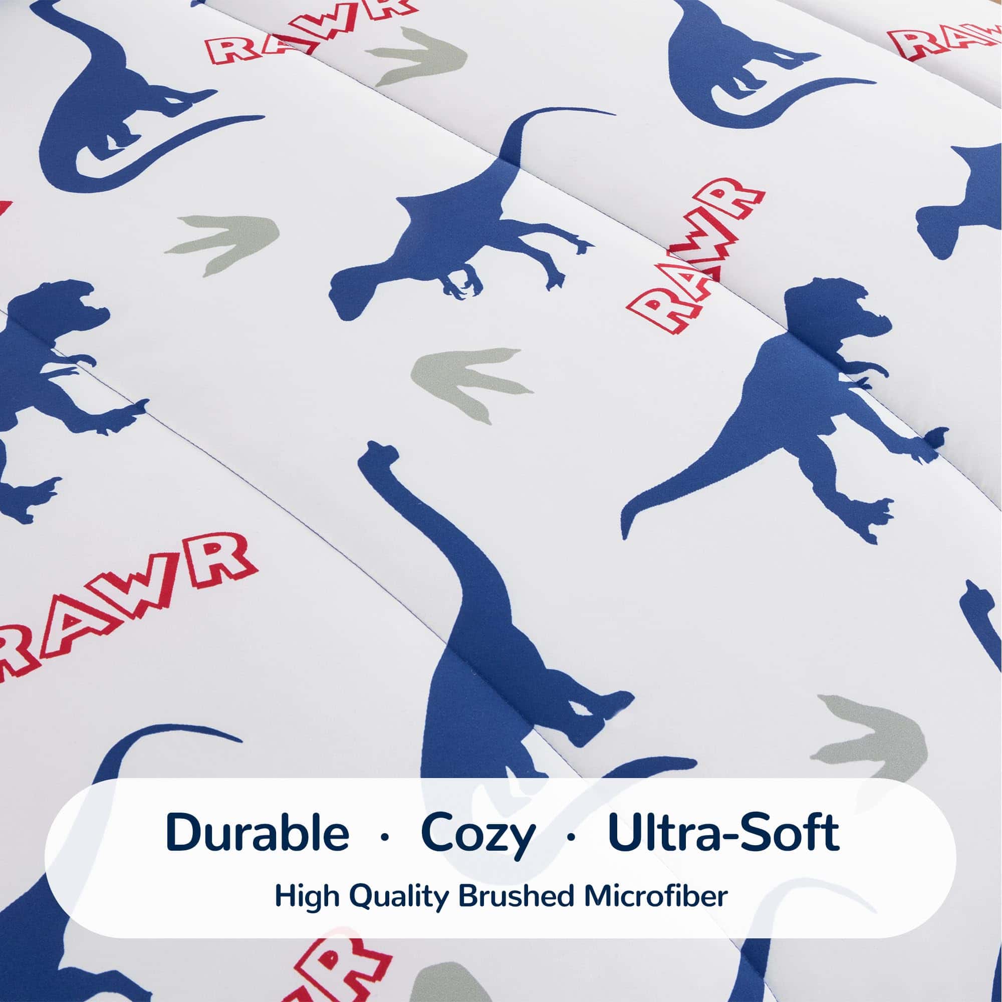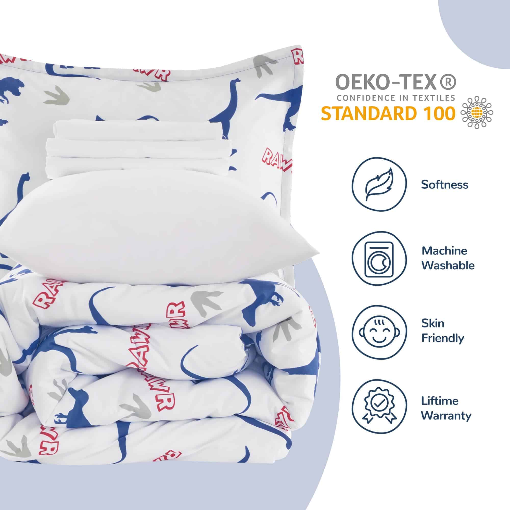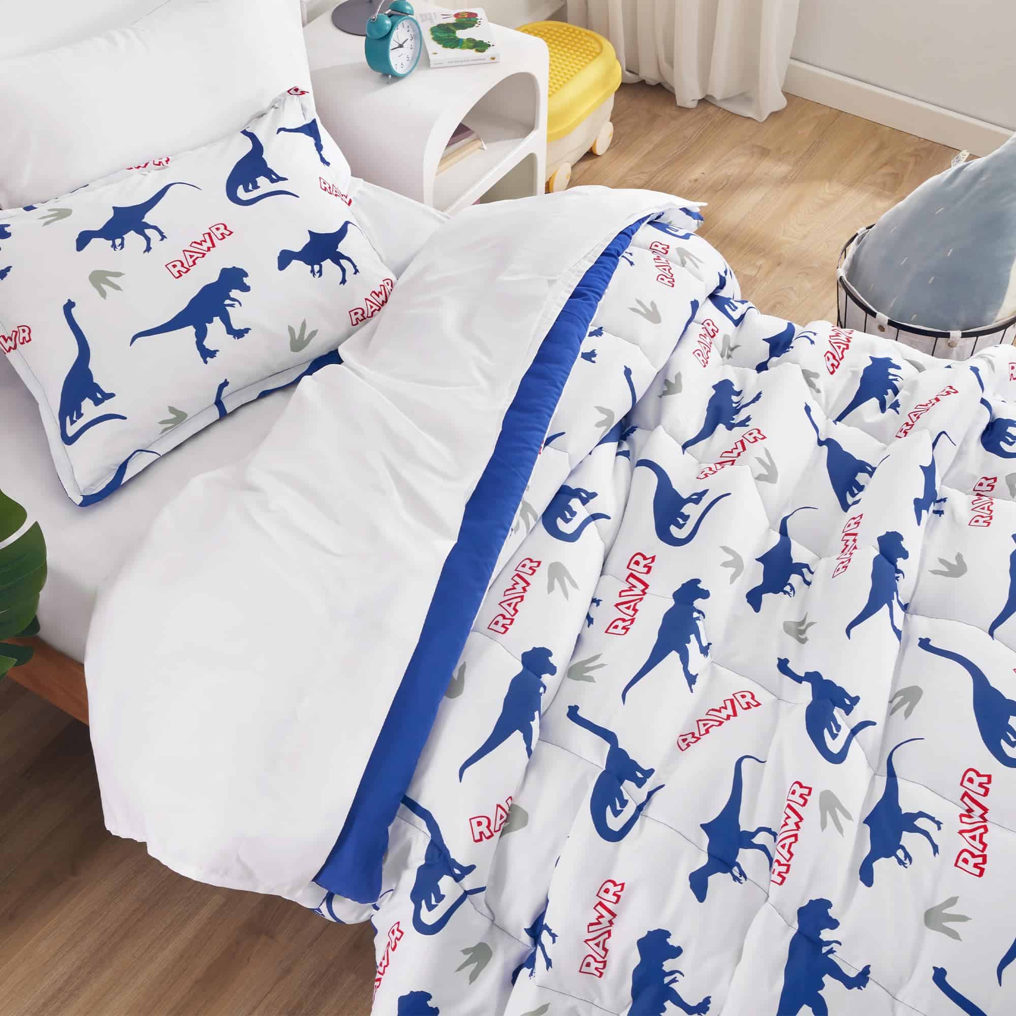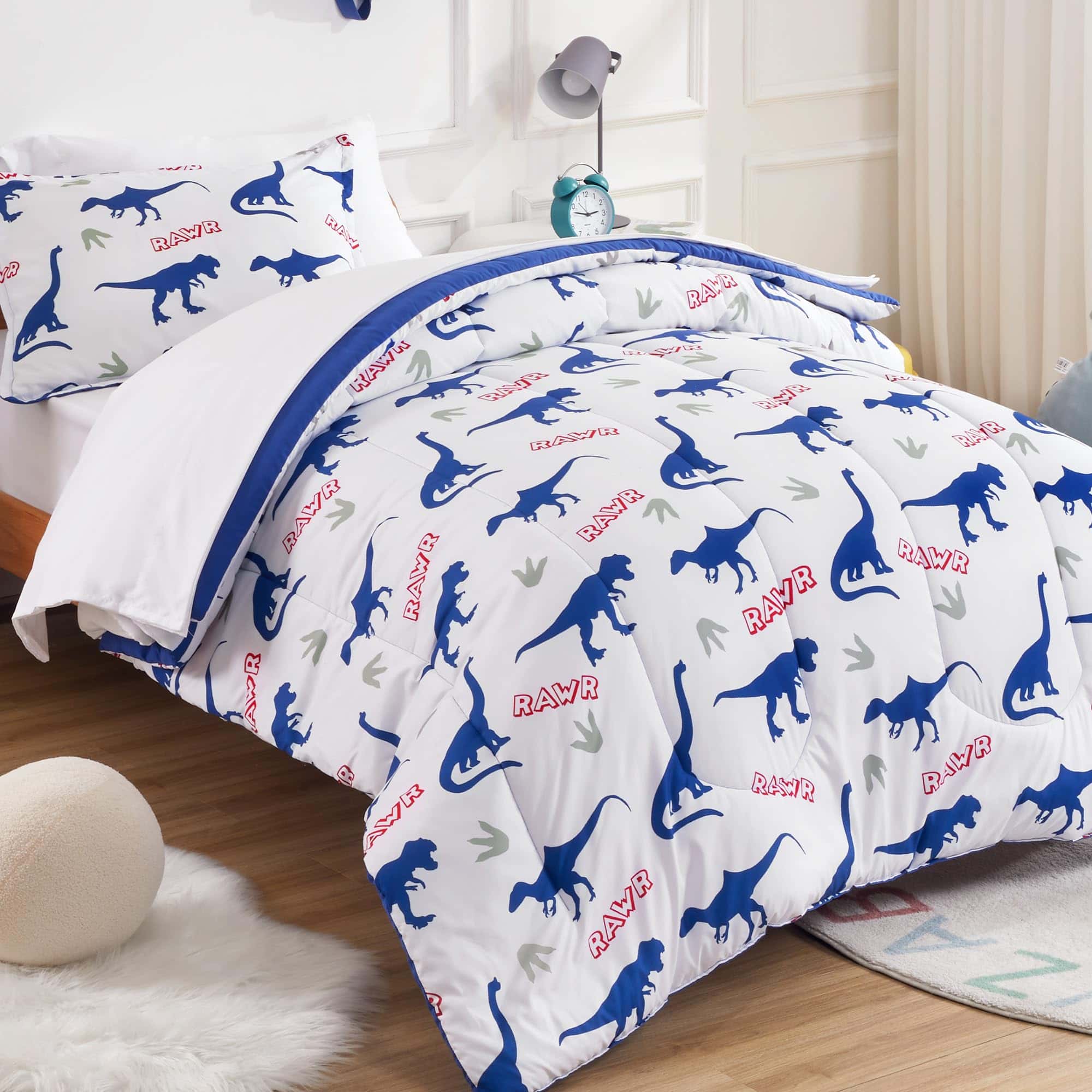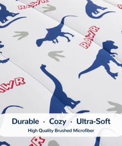 ¡Deje que la imaginación de su hijo vuele con este hermoso juego de ropa de cama de patrón de dinosaurio! Confeccionado con materiales de primera calidad, este juego de edredón es perfecto para todas las estaciones, brindando comodidad y estilo a la habitación de su hijo. El juego incluye todo lo necesario para una cama completa e impresionante. ¡Haz que la hora de dormir sea emocionante y acogedora para tu pequeño fanático de los dinosaurios!