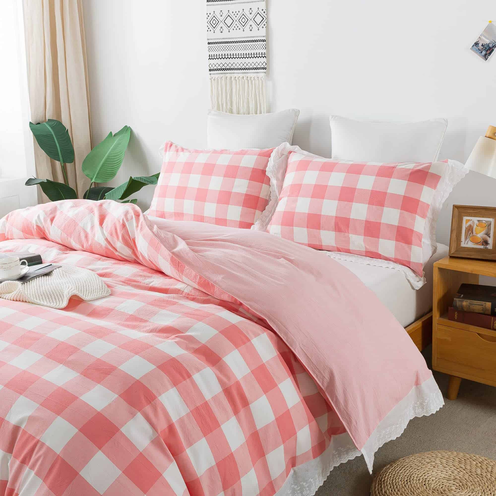 Tienda Softta: alta calidad de vida, no deberías haberlo rechazado, lo mismo es cierto para una noche maravillosa. Diseño: patrón clásico de cuadros de búfalo. Rojo y blanco con elegantes volantes alrededor de los bordes. 100% algodón sólido teñido con hilo lavado, suave, amigable con la piel y duradero. Cierre de cremallera. Adecuado para dormir desnudo.