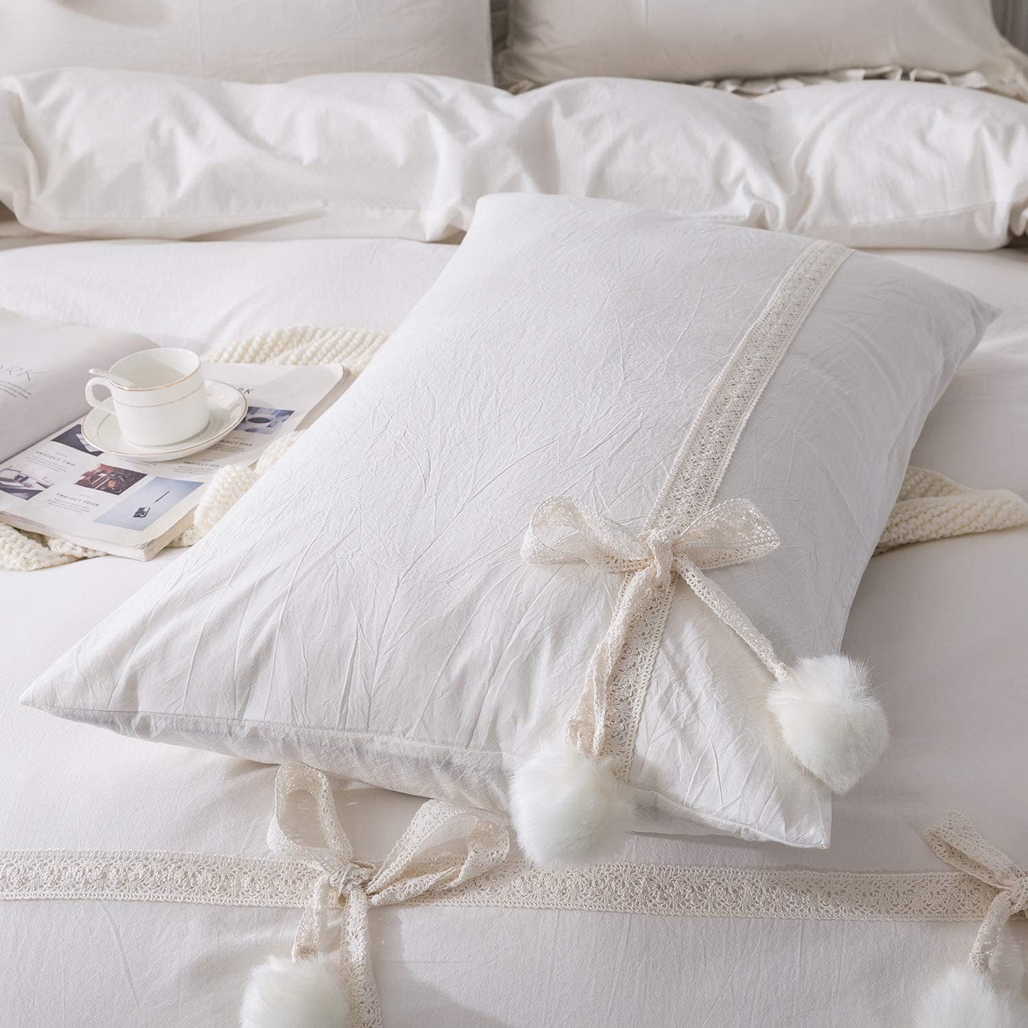 Juego de Ropa de Cama Softta Vintage Elegante Blanco 3