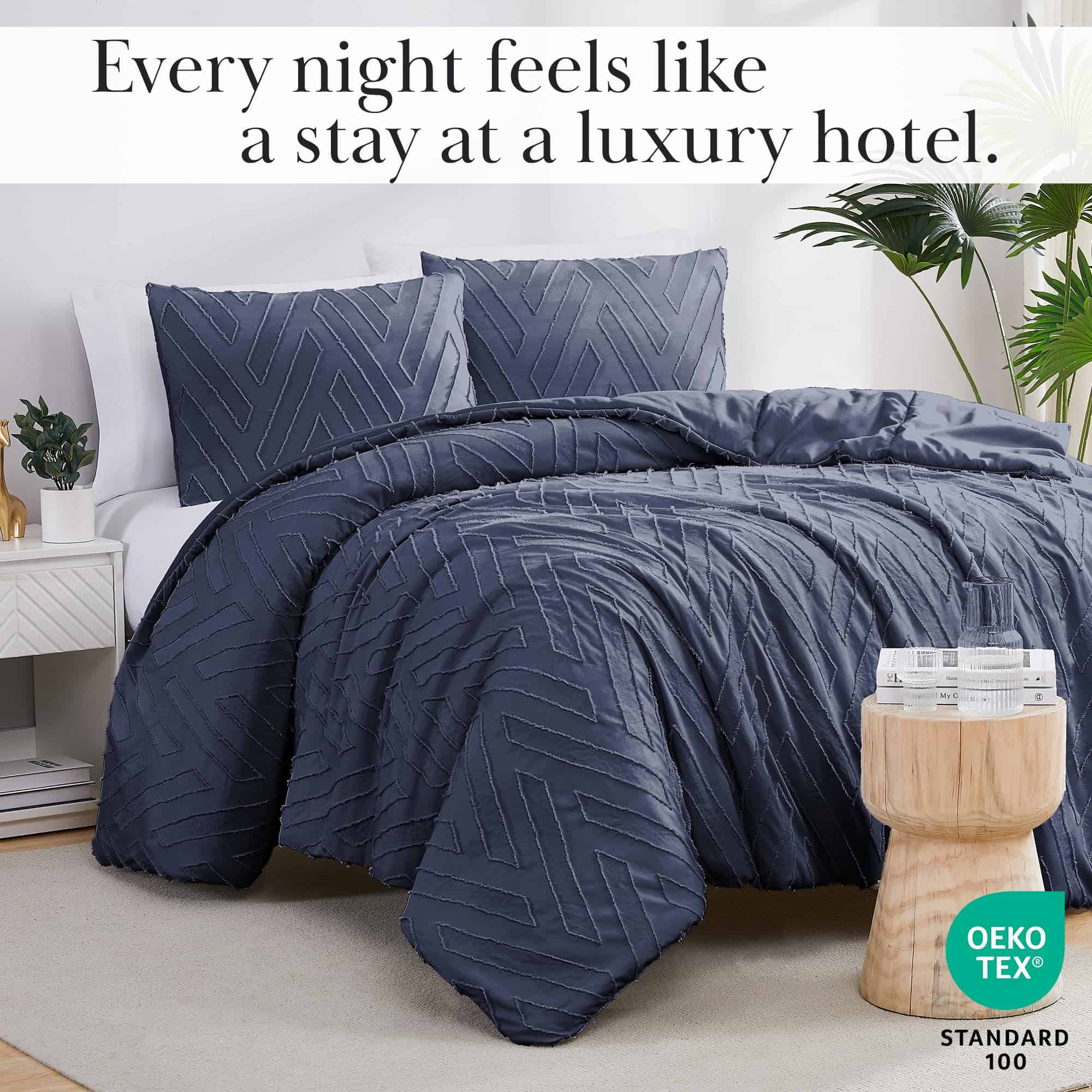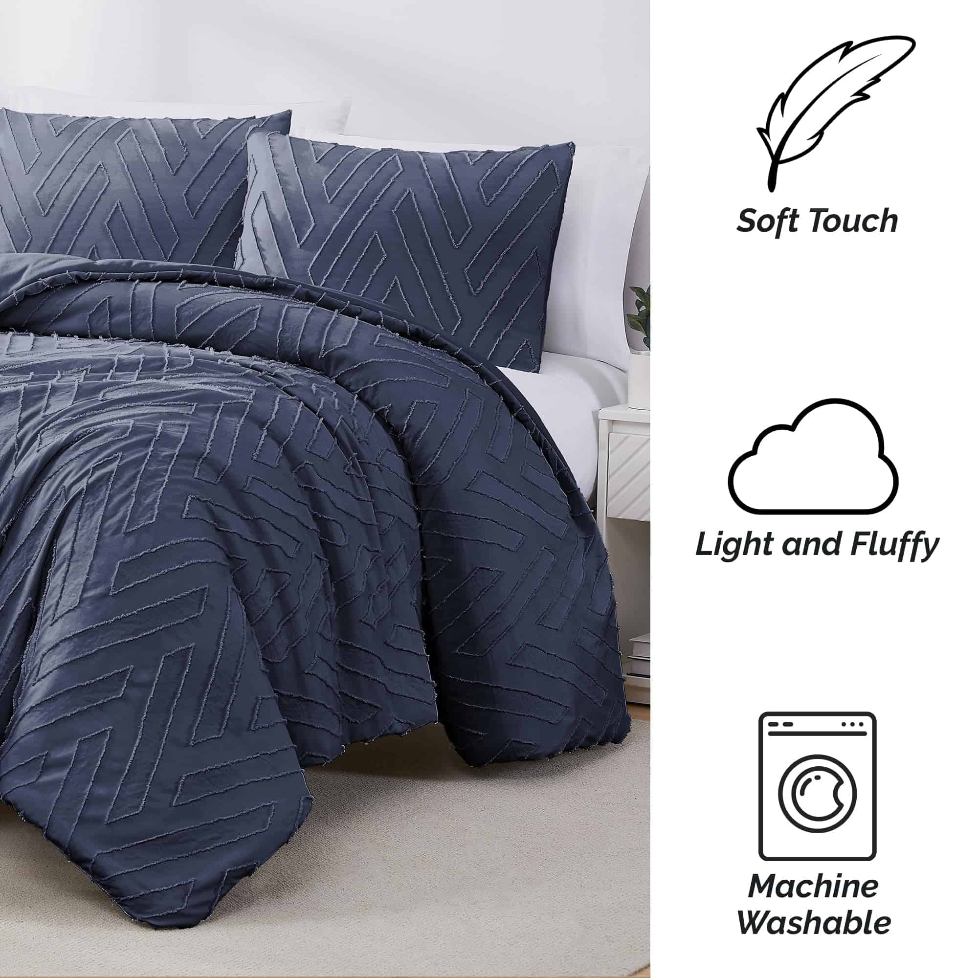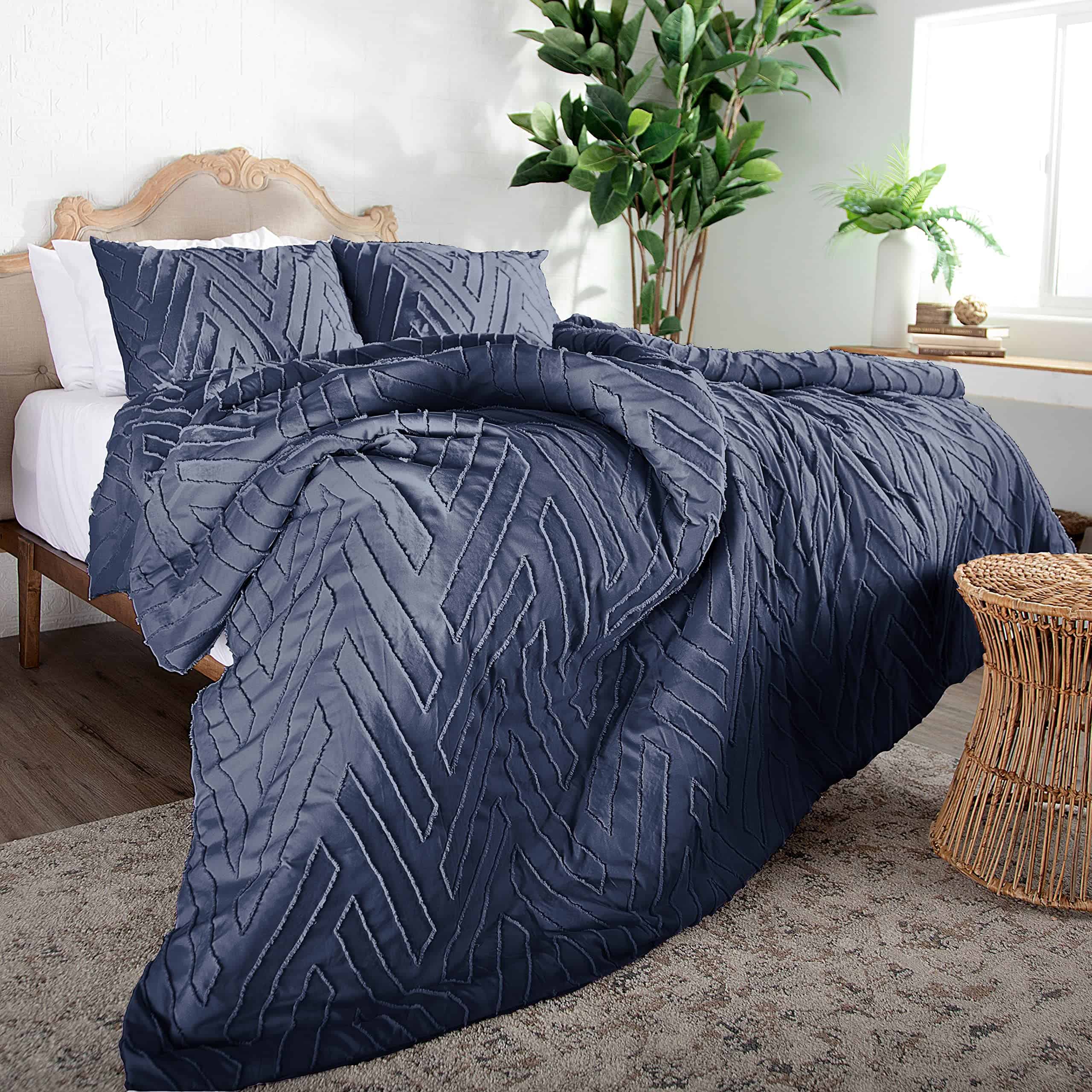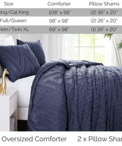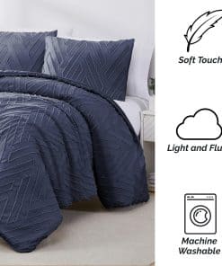 El juego de edredón de tamaño King/California King es un conjunto de 3 piezas que incluye un edredón de 106 pulgadas de ancho x 92 pulgadas de largo y dos fundas de 20 pulgadas de ancho x 36 pulgadas de largo. Las fundas tienen un cierre de sobre y ocultan por completo tus almohadas. El patrón audaz y sencillo de hilos texturizados tejidos en la tela del juego de edredón crea un impacto dramático en tu dormitorio al instante. Con este edredón, puedes introducir profundidad y textura a tu dormitorio. Fabricación de alta calidad y tela suave exclusiva: tejido con microfibras suaves de doble cepillado, este juego de ropa de cama se suavizará con cada lavado. Este juego de edredón tiene un relleno sintético alternativo al plumón y ofrece calidez para todas las estaciones. Hay tantas formas en las que se pueden utilizar estos juegos de edredón. Puedes combinarlo para agregar profundidad o simplemente usarlo por sí solo. Ya sea ropa de cama de granja, estilo boho o decoración moderna, esta colcha extragrande de tamaño king transformará al instante tu dormitorio. Multiusos y versátil. Estos juegos de edredón extragrandes se pueden usar solos o en capas con otra ropa de cama. Estos juegos de edredón tamaño king y california king y colchas se pueden utilizar en cualquier tipo de decoración. Puedes utilizarlos fácilmente en un ambiente de loft urbano simplemente chic, ropa de cama de granja, decoración de país francés, estilo de ropa de cama bohemia o en un ambiente minimalista. Viene en una caja sellada al vacío. Cuidado fácil y resistente a la decoloración. Nuestros juegos de ropa de cama son resistentes a las arrugas, a la decoloración y a las bolitas. Estos juegos de colchas son de alta calidad y están hechos con nuestra exclusiva tela de microfibra de lujo de doble cepillado, que proporciona una suavidad y lisura sustancialmente mayor. Son lavables a máquina y seguirán suavizándose con cada lavado.