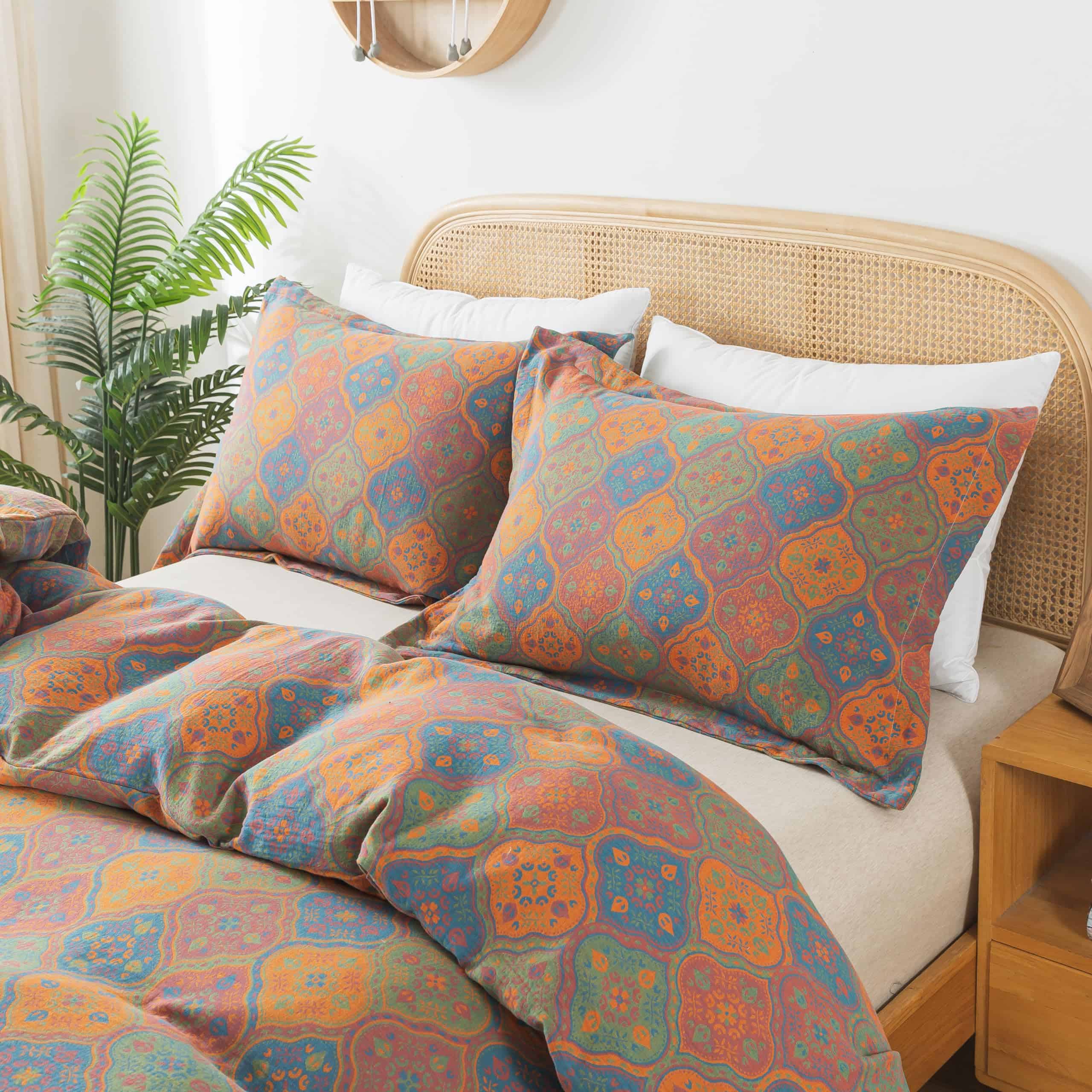 Juego de Ropa de Cama Vintage Naranja Azul Tamaño Completo