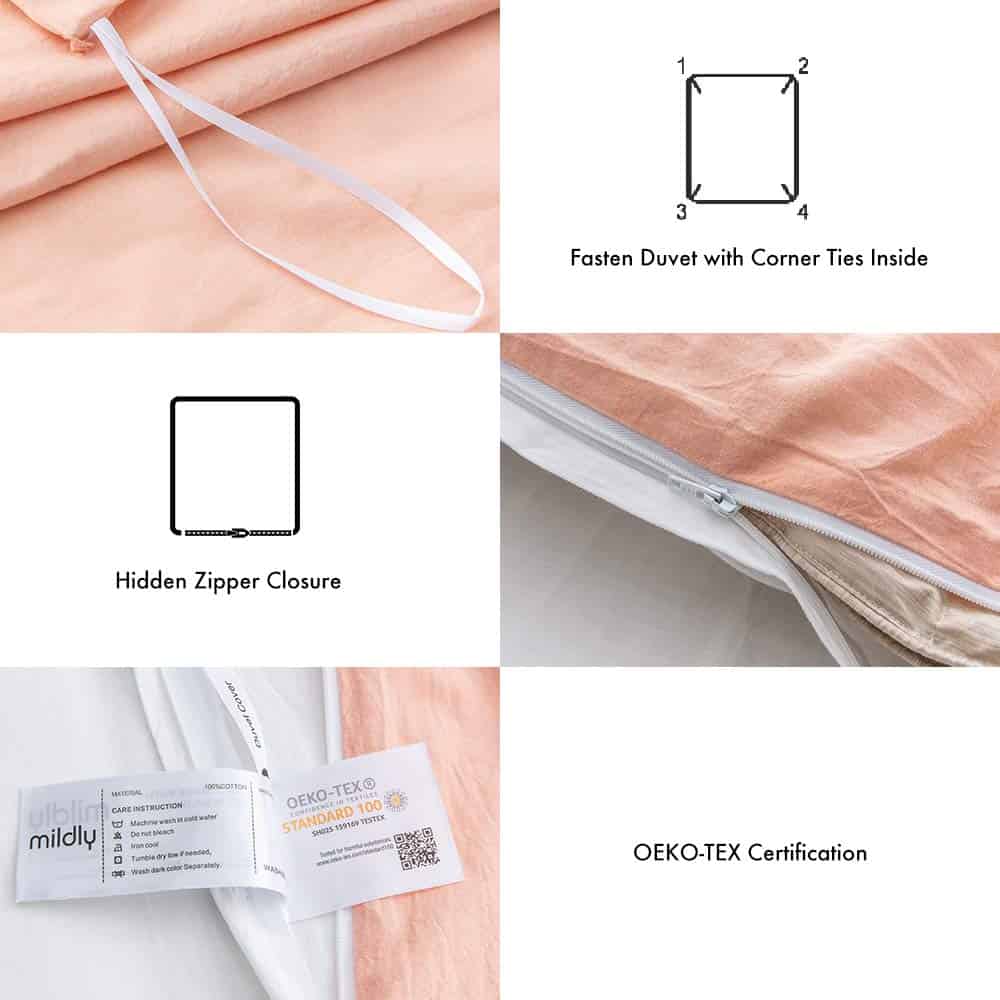 2. OEKO-TEX: El juego de funda de edredón MILDLY se fabrica en una fábrica con certificación OEKO-TEX estándar 100, un sistema de certificación independiente que garantiza que los textiles cumplan con altos estándares de seguridad y medioambientales.