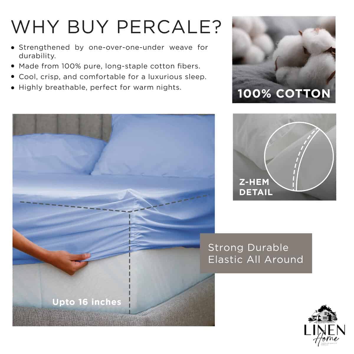 Juego de Sábana Ajustable de Lino Home 100% Algodón Percale