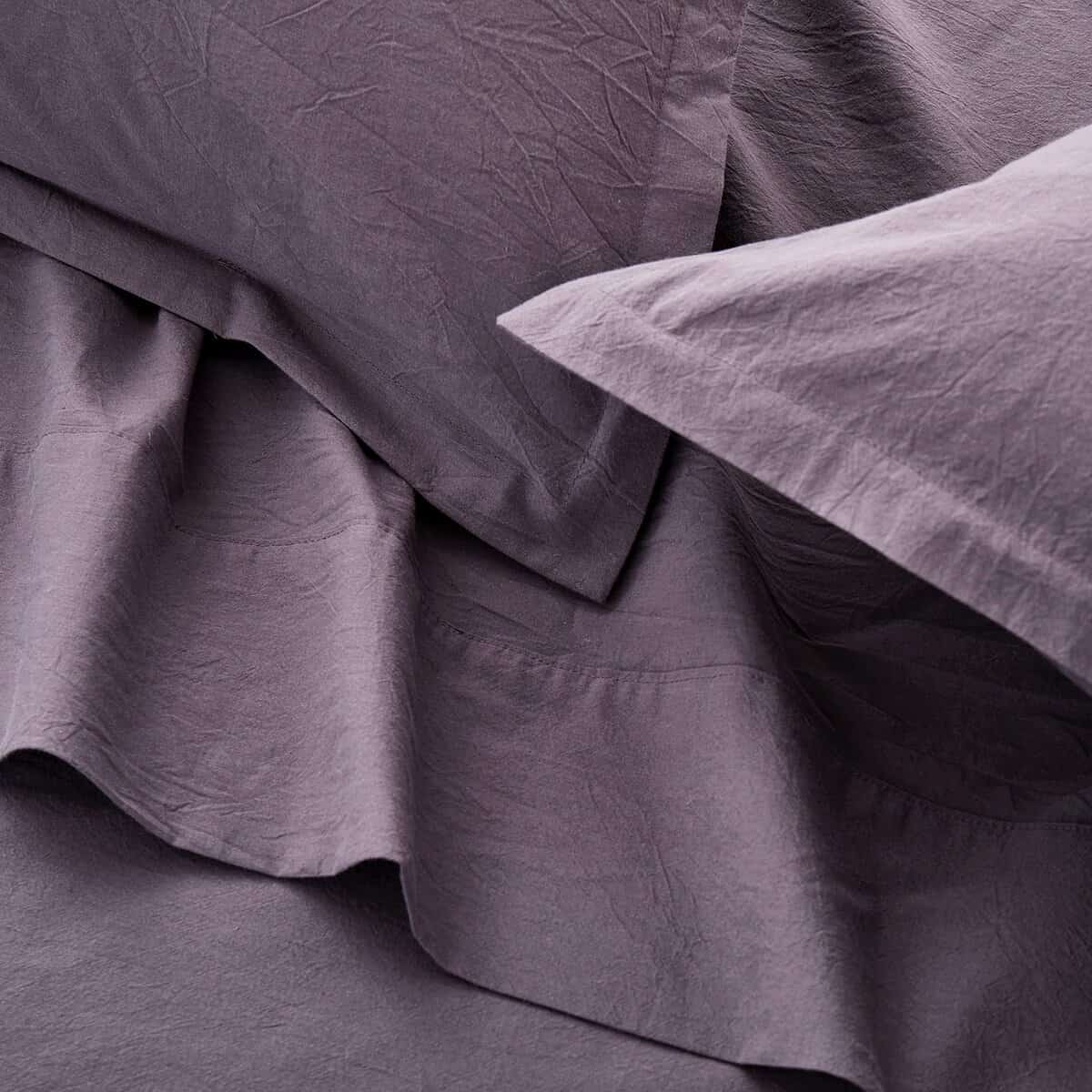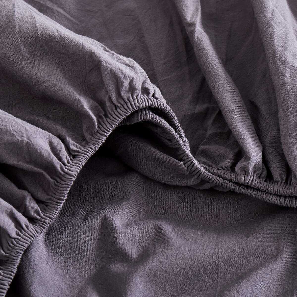 Juego de sábana ajustable de algodón lavado en estilo moderno relajado Chambray de Eikei Home. Hecho de suave tela de algodón 100 por ciento lavado de piedra en una variedad de colores atemporales. Fundas de almohada con ribete y cierre de solapa francesa. Disponible en tamaño US King, Full / Queen y Twin. Tejido de percal de color sólido resistente a la decoloración y las arrugas con un aspecto naturalmente arrugado para la máxima comodidad en tu dormitorio. Viene con una práctica bolsa de almacenamiento.