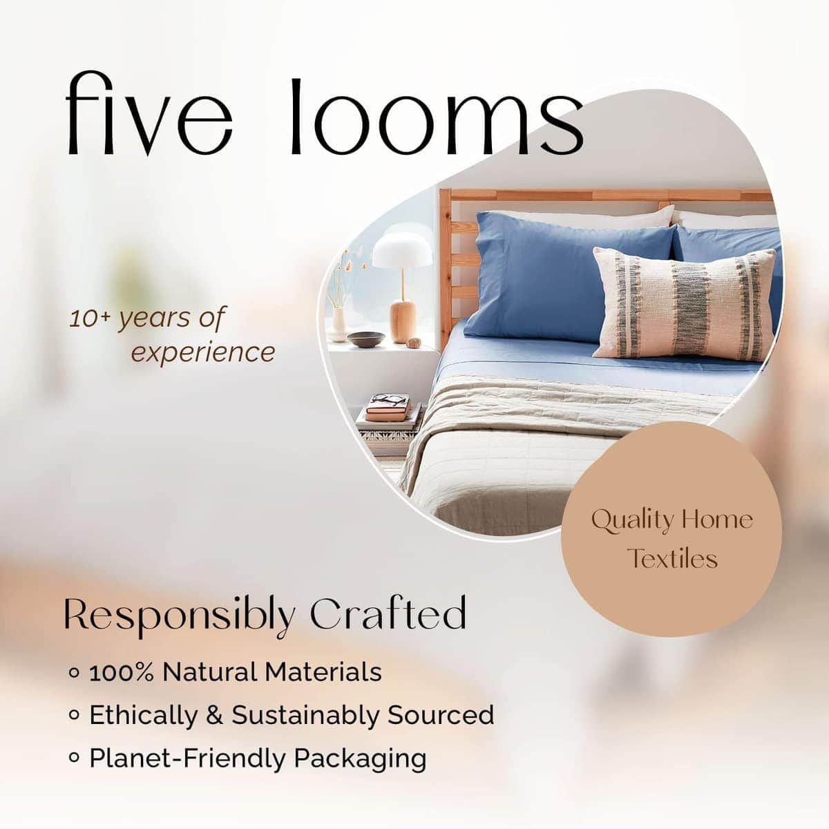 5. Sobre nosotros: Los productos de Five Looms están hechos con materias primas cuidadosamente seleccionadas para garantizar que nuestros valores de fabricación ética y sostenibilidad para nuestro planeta nunca se vean comprometidos. Nuestras suaves y crujientes sábanas están fabricadas bajo altos estándares de calidad