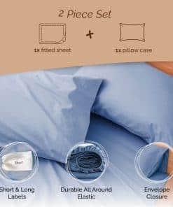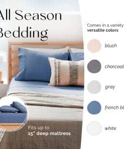 4. Fácil cuidado: Nuestras sábanas que absorben la humedad son resistentes a la decoloración, las manchas y el encogimiento. Estas sábanas transpirables de acabado mate son lavables a máquina en agua fría o tibia. Secar en secadora o planchar a baja temperatura, evitar el uso de lejía y para minimizar las arrugas, doblar o extender justo después de que termine el ciclo de secado.